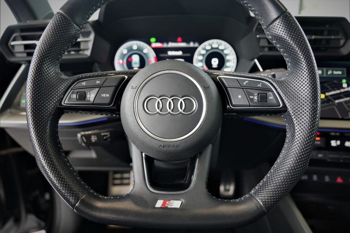 2 ports de charge USB AR,6 HP (passifs),Accoudoir central coulissant en longueur, avec inclinaison réglable,Accoudoir de portière en similicuir,Airbags latéraux à l’AV et système d’airbags de tête,Alerte de sortie de voie,Appel d’urgence Audi connect,Applications décoratives en aluminium Spectre foncé,Audi Connect Appel d?urgence & Service,Audi connect et assistance en ligne,Audi Connect Navigation et Divertissement,Audi Drive Select,Audi park assist : cherche à l?aide de capteurs à ultrasons les places de stationnement (bataille et créneau) appropriées le long de la chaussée,Audi pre sense front,Audi smartphone interface,Audi sound system : 10 HP incluant un HP central et un subwoofer,Audi virtual cockpit,Boîtiers de rétroviseurs extérieurs dans la couleur de la carrosserie,Câbles de recharge pour téléphone portable compatibles Apple et Android,Caméra de recul,Ciel de pavillon en tissu Noir,Clé à fréquence radio (sans safelock),Climatisation automatique confort 2 zones,Combiné d?instruments numérique Digital Cockpit 10,25,Commande de désactivation de l’airbag passager AV,Contrôle de la pression des pneus,Détecteur de pluie et de luminosité,Direction assistée électromécanique, asservie à la vitesse,Dispositif de limitation de vitesse,Dossier de banquette AR rabattable en deux parties 40:60,Eclairage intérieur,Ecrous de roues antivol,Extérieur classic avec calandre Noir mat et diffuseur Noir mat,Hold Assist,I-Size et Top Tether pour les sièges AR extérieurs,Interface Bluetooth,Jantes en alliage léger 18 »,Kit réparation,Logo S,MMI Radio Plus,Navigation MMI plus avec MMI touch,Outillage de bord,Pack extérieur S line,Pack intérieur S line,Pare-brise à vitrage acoustique,Pare-brise avec bandeau pare-soleil gris,Peinture vernie,Phares à LED avec clignotants dynamiques AR,Phares AV à LED (feux de croisement,Préparation pour appareil de navigation,Rappel de ceinture de sécurité avec dispositif AR de détection d?occupation du siège,Réception radio numérique (DAB),Récupération d’énergie,Régulateur de vitesse,Régulateur de vitesse plus limiteur de vitesse,Rétroviseur intérieur jour/nuit automatique sans encadrement,Rétroviseurs extérieurs réglables,Sécurité enfant électrique,Sécurité enfants,Sellerie tissu Pouls /similicuir monopur 550,Seuils de portes AV avec insert en aluminium et illuminé,Sièges AV classiques,Sièges AV réglables manuellement,Sièges AV Sport,Sièges Sport Plus sellerie tissu en cascade/combinaison Simili cuir mono.pur 550,Système Start & Stop avec récupération d’énergie au freinage,Tapis de sol AV/AR,Trousse de secours, triangle de présignalisation et 2 vestes de sécurité,Volant cuir multifonctions Plus 3 branches avec palettes de commande au volant