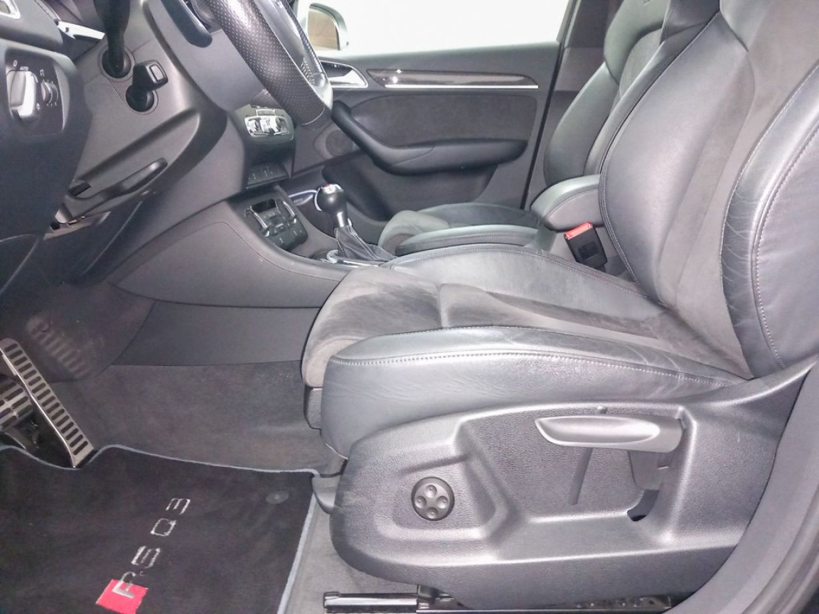 ABS (antiblocage de roues) / EBV (répartiteur de freinage) / ASR (antipatinage) / assistance hydrolique au freinage d’urgence,Accoudoir central AV coulissant en longueur,Advanced key : clé avec fonction de démarage du moteur ,Airbags de tête,Airbags frontaux conducteur et passager grand volume,Applications décoratives Piano laqué Noir,Appuie-tête intégraux à l’AV et l’AR,Assistant de démarrage en côte,Audi Drive Select : commande la configuration,Audi Music Interface,Audi parking system plus avec caméra de recul signal acoustique et visuel d?aide au stationnement AV et AR avec caméra de recul permettant de visualiser l?arrière du véhicule sur l?écran couleur du MMI,Audi Phone Box,Audi Singleframe,Audi Tracking System,Banquette AR 3 places rabattable 40:60 ou complètement,Becquet de pavillon RS sur le capot de coffre,Becquet de pavillon RS sur le capot de coffre, laqué dans la couleur de la carrosserie,Boîte de vitrese S tronic à 7 rapports,Boîtiers de rétroviseurs extérieurs aluminium mat,Bose surround sound system 14 HP dont 1 subwoofer,Ceintures de sécurité trois points à toutes les places avec rappel pour les places AV et AR,Ciel de pavillon en tissu noir,Climatisation automatique Confort,Colonne de direction réglable électriquement en hauteur et en profondeur,Contrôle de la pression des pneus avec signaux acoustique et visuel de perte de pression,Direction assistée électromécanique sans entretien avec insistance asservie à la vitesse,Eclairage d’ambiance intérieur et extérieur à LED,Eclairage et catadioptre actifs sur toutes les portières,Ecrous antivol,EDS (blocage électronique de différentiel) et ESC (contrôle électronique de stabilisation),Feux AR à technologie LED,Feux de freinage adaptatifs et clignotants lors d’un freinage d’urgence déclenchement des feux de détresse automatique,Feux de route assistés,Fixation pour sièges enfants ISOFIX aux places extérieures AR,Frein de stationnement électromécanique,Hayon de coffre à ouverture/fermeture électrique,Identification du modèle à l’AR,Inscription ,Inscription ,Inserts de seuils de portes en aluminium et logo ,Instrumentation de bord spécifique RS avec écran couleur HD TFT 3,5,Jantes aluminium 5 branches structurées, 8Jx18,Jantes Audi Sport en aluminium coulé 5 branches triples 8.5Jx19,Jantes Audi Sport en aluminium coulé style 10 branches finition Titane mat,Kit de réparation de pneus,MMI Navigation,Pack Coffre,Pack Rangement,Pare-brise en verre feuilleté athermique,Pare-chocs AV/AR au design résolument spécifique RS,Pare-soleil (conducteur et passager AV) avec miroirs de courtoisie éclairés,Plancher de chargement réversible,Préparation pour crochet d’attelage,Projecteurs Xénon Plus incluant lave-phares,Protection antidémarrage électronique,Protections latérales anticollision,Rampes de pavillon en aluminium mat,Réglages électriques du support lombaire,Régulateur de vitesse,Rétroviseur intérieur jour/nuit automatique (incluant le détecteur de pluie et de luminosité),Rétroviseur intérieur jour/nuit automatique incluant le détecteur de pluie et de luminosité,Rétroviseurs extérieurs aluminium mat,Rétroviseurs extérieurs escamotables électriquement,Sécurité enfants sur les portières et les vitres électriques AR,Sellerie cuir Nappa fin avec surpiqûres contrastées et embossée RS Q3,Seuil de chargement en acier inoxydable,Sièges AV avec réglage manuel de la hauteur,Sièges AV Sport,Sorties d’échappement RS avec embout ovale chromé à gauche,Système de commande vocale,Système de freinage RS, système de freinage haute performance 18,Système de récupération d’énergie générée lors des phases de freinage et de décélération / Système Start/Stop,Tapis de sol complémentaires AV et AR dans la couleur de la moquette,Tire Mobility System,Transmission intégrale permanente Quattro à embrayge multidisques piloté,Triangle de présignalisation, trousse de secours et outillage de bord,Triangle de présignalisation, trousse de secours et outillage de bord/cric,Verrouillage centralisé avec fonction Autolock et télécommande à fréquence radio intégrée à la clé du véhicule: ouvre et ferme les portes,Vitres AR surteintées (privacy),Vitres AR surteintées (vitrage privacy),Volant Sport multifonctions RS en cuir style 3 branches