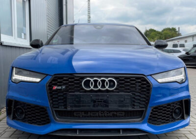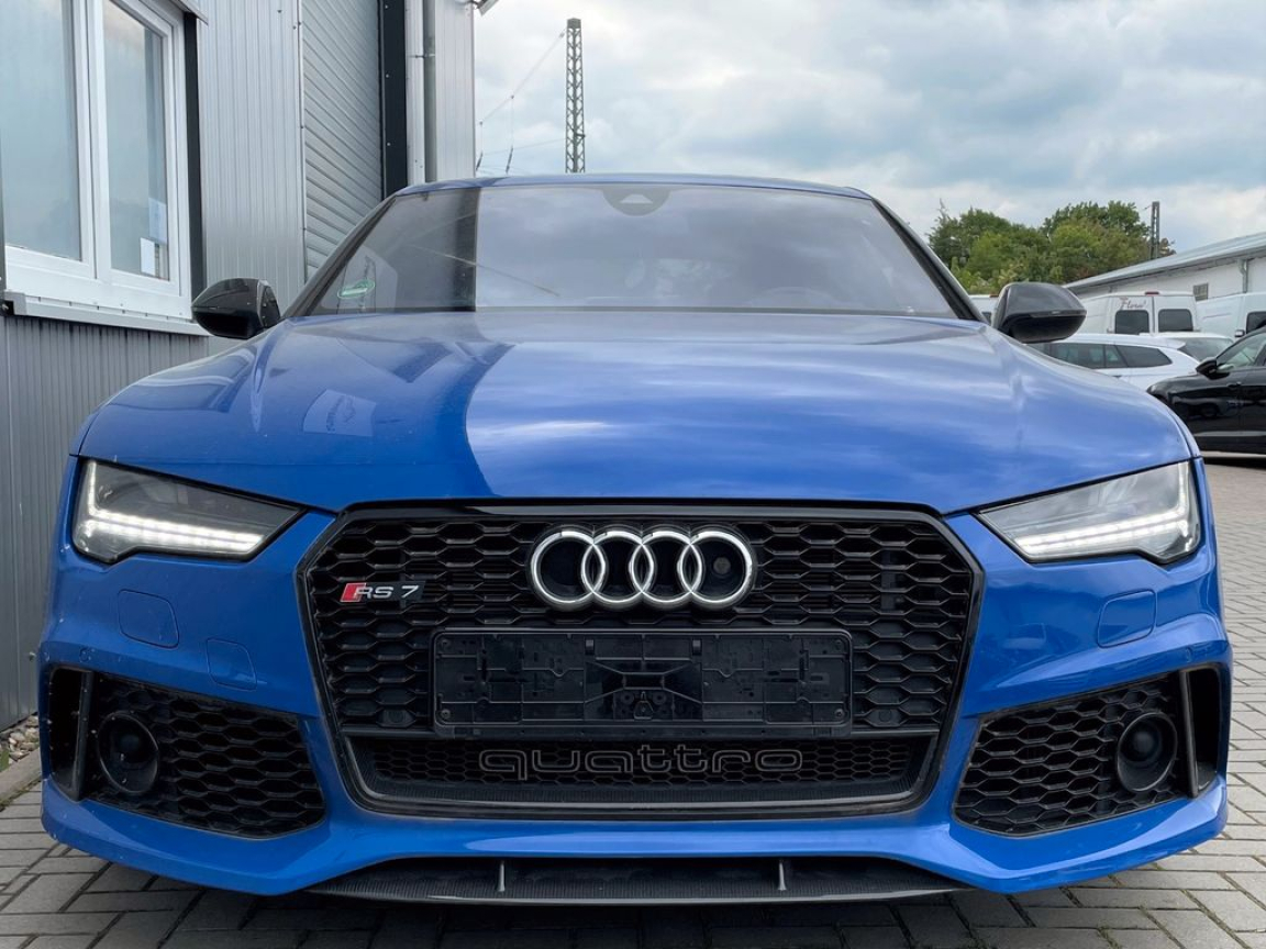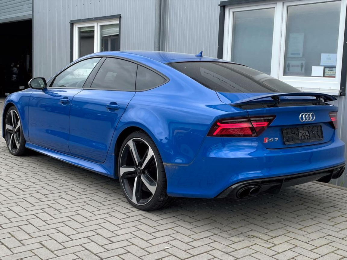 ABS + EBV + ASR,Accoudoir central AR rabattable avec espace de rangement,Accoudoir central AV avec porte-boisson intégré et espace de rangement,Accoudoirs de portières en cuir,Active Noise Cancellation : permet de réduire les bruits parasites produits par le roulement du véhicule,Adaptative air suspension Sport à réglages RS spécifiques,Airbags de tête,Airbags frontaux conducteur et passager grand volume,Alarme antivol avec protection antidémarrage électronique,Applications décoratives en Carbone,Appuis-tête AV intégraux,Assistance au véhicule basée sur les données de navigation,Assistance hydraulique au freinage d’urgence,Audi Connect (en combinaison avec le MMI Navigation Plus avec MMI Touch) + Audi phone Box,Audi connect en combinaison avec le MMI GPS advanced avec MMI Touch + Audi phone box,Audi Drive Select (Permet le réglage du mode de conduite),Audi Hold Assist (Assistant de démarrage en pente),Audi Music Interface,Audi Park Assist,Audi Parking System Plus avec caméra de recul,Audi Phone Box,Audi Pre Sense,Audi Premium Tracking System: Système d’immobilisation et de localisation par satellite couplé à l’alarme antivol,Audi Premium Tracking System: Système d’immobilisation et de localisation par satellite Système de tracking par satellite,Banquette AR (avec vide-poches) 2 places rabattable,Boîte de vitesse Tiptronic 8 rapports,Bose Surround Sound système audiophonique DSP à 12 canaux avec compensation dynamique des bruits ambiants,Calandre Audi Singleframe en titane avec grille en nid d’abeilles laqué avec inscription Quattro en gris titane sur le bas de la calandre,Carrosserie hybride en aluminium,Ceintures de sécurité 3 points à toutes les places,Cendrier et allume-cigare éclairés à l’AV et à l’AR,Châssis sport RS plus avec Dynamic Ride Control (DRC),Ciel de pavillon en tissu noir,Clé radiocommandée avec ouverture/fermeture confort pour les vitres électriques et le toit ouvrant,Climatisation Automatique 4 zones,Coffre à bagages à déverrouillage et ouverture automatique par détection d’un mouvement du pied sous le bouclier AR,Colonne de direction de sécurité réglable électriquement en hauteur et en profondeur avec mémoire,Contrôle de la pression des pneus avec signaux acoustique et visuel de perte de pression,Contrôle de pression des pneus avec signaux de perte de pression,Cylinder on Demand système intelligent de gestion des cylindres qui permet de passer de 4 à 8 cylindres selon le besoin de puissance identifié,Démarrage et arrêt du moteur par simple impulsion sur le bouton Start/Stop,Direction Dynamique,Echappement sport avec sorties ovales noir brillant de chaque côté pour une sonorité accrue,Eclairage d’ambiance intérieure et extérieur à LED,Eclairage et catadioptres actifs sur toutes les portières,Eclairage intérieur à temporisation AV / AR,Ecrous antivol,EDS+ESP,Entourage des vitres latérales en titane,Fermeture du hayon assistée électriquement,Feux de freinage adaptatifs et clignotants lors d?un freinage d?urgence (déclenchement des feux de détresse automatique),Feux de route assistés,Fixation Isofix pour sièges AR,Fonction clignotement d?autoroute: une brève impulsion du comodo active trois cycles de clignotement,Frein de stationnement électromécanique,GPS Advanced avec MMI Touch écran couleur HD 7,Inscription quattro sur le tableau de bord côté passager,Inscription RS7 sur la calandre,Inscription V8 T sur les ailes AV,Inserts de seuils de portes en aluminium et logo RS7,Inserts en aluminium mat intégrés au spoiler AV et au diffuseur,Instrumentation de bord spécifique RS avec écran couleur HD TFT 7,Jantes en titane mat 9.5Jx21,Keyless Entry,Keyless Go,Pack Coffre,Pack Coffre: 2 crochets escamotables pour accrocher des sacs, filet à bagages et prise 12V,Pare-brise en verre feuilleté athermique,Pare-chocs AV/AR spécifiques type RS,Pare-soleil avec miroir de courtoisie éclairé,Peinture nacrée,Phares AV intégralement à LED : feux de croisement,Porte-boissons dans l’accoudoir central AV et AR,Protections latérale anticollision,Récupération d’énergie,Réglage support lombaire électrique,Régulateur de vitesse avec fonction freinage,Rétroviseur intérieur jour/nuit automatique et capteur de pluie et de luminosité,Rétroviseurs extérieurs avec coques en titane à réglages électrique,Sécurité enfants sur les portières et les vitres électriques AR,Sellerie cuir Valcona avec surpiqûres contrastées en nid d’abeille et embossée RS7,Services Audi connect,Sièges AV chauffants,Sièges AV Sport S,Sièges avant électriques à mémoire conducteur et support lombaire,Spoiler AR RS,Spoiler AV et diffuseur AR en titane,Système d’échappement Sport avec sorties ovales noir brillant,Système de freinage hautes performances avec disques de freins perforés et étriers fixes,Tapis complémentaires AV et AR assortis à la couleur de la moquette,Tire Mobility System Compresseur et produit de colmatage pour les pneus; remplace roue de secours normale,Toit ouvrant panoramique en verre coulissant et entrebaillable électriquement,Transmission intégrale permanente Quattro,Transmission intégrale permanente Quattro avec répartition asymétrique et dynamique du couple 40:60,Trappe à skis,Trappe à skis avec housse de rangement,Triangle de secours, trousse de secours et outillage de bord,Vitesse maximale relevée à 280km/h,Vitres athermiques teintées vertes,Vitres latérales AV et pare-brise vitrés acoustiquement : meilleure isolation phonique,Volant Sport multifonction 3 branches en cuir avec méplat et palettes de changement de vitesse