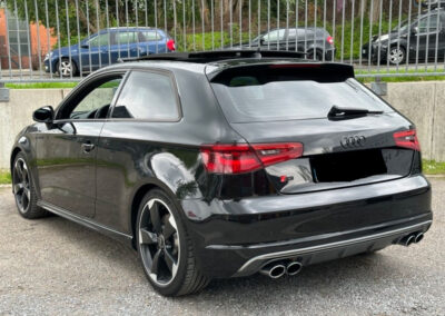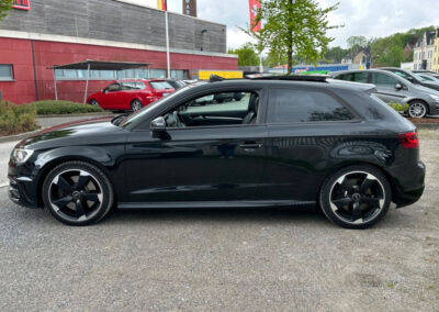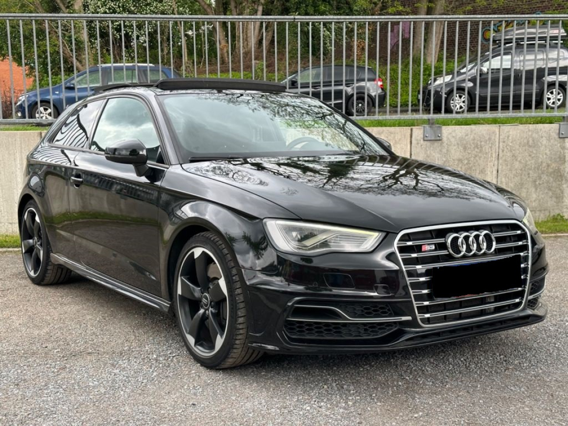 Accès confort : fonction étendue de basculement des sièges AV permettant un accès facile aux places AR,Accoudoir central AV avec vide-poches relevable et inclinaison réglable et coulissant en longueur,Airbag de genoux côté conducteur,Airbags grand volume conducteur et passager AV,Airbags latéraux AV intégrés aux dossiers des sièges,Alarme antivol avec protection anti-remorquage (désactivable),Allume-cigare et cendrier amovible,Antipatinage électronique ASR,Applications décoratives sur les contre-portes et tableau de bord ,Audi Drive Select (Permet le réglage du mode de conduite),Audi Parking System : facilite le stationnement à l’aide d’un signal sonore indiquant la distance AR,Audi Premium Tracking System,Audi Sound System amplificateur à 6 canaux,Becquet de pavillon laqué dans la couleur de la carrosserie,Becquet de pavillon S3,Blocage électronique de différentiel EDS,Boîte à gants grand volume côté passager AV éclairée,Cache-bagages amovible,Calandre Audi Singleframe gris platine avec entretoises horizontales et anneaux Audi chromées,Carrosserie galvanisée (entièrement galvanisée aux endroits sensibles à la corrosion),Ceintures de sécurité,Châssis Sport S avec suspensions et amortisseurs plus fermes,Châssis Sport S surbaissé de 25 mm, avec suspensions et amortisseurs plus fermes,Ciel de capote en tissu noir,Ciel de pavillon en tissu noir,Clé avec emblème S3,Climatisation automatique Confort avec réglage asservi à la position du soleil,Contrat de Garantie : 2 ans sans limitation kilométrique,Contrôle de ceinture attaché pour toutes les places,Contrôle de pression des pneumatiques,Contrôle électronique de stabilisation (ESC) désactivable,Détecteur de pluie et de luminosité avec fonction coming home/leaving home et bande grise sur la partie supérieure du pare-brise,Direction progressive contribuant à une augmentation de la dynamique de conduite grâce à une démultiplication directe et progressive,Direction progressive: augmente la dynamique de conduite grâce à une démultiplication directe et progressive de la direction ainsi que du confort de conduite en diminuant les efforts de braquage en ville,Dossier de banquette AR rabattables en deux parties 40/60 ou complètement,Ecrous de roues antivol (ne s’enlèvent qu’avec l’adaptateur fourni),Feux AR avec feux de recul blancs et feux AR de brouillard incluant 3ème feu stop surélevé et éclairage de plaque à LED,Feux de freinage adaptatifs,Feux de route assistés: gestion automatique du passage de feux de croisement à feux de route et inversement,Fixation pour sièges enfants ISOFIX et Top Tether pour les places extérieures AR,Identification du modèle /technologie sur le capot de coffre,Inscription quattro sur la calandre, le capot de coffre et le tableau de bord côté passager,Inscription S3 sur la calandre,Jantes en aluminium coulé style 5 branches doubles en étoile 18,Lave-essuie-glace 2 vitesses,Lève-vitres à lAV électriques avec protection anti-pincement,Lève-vitres électriques avec protection anti-pincement,Lunette AR dégivrante avec minuterie,Miroir de courtoisie côté conducteur,Miroir de courtoisie côté passager,MMI GPS Plus avec données de navigation sur carte SD,Oeilletons de fixation,Outillage de bord dans le coffre,Outillage de bord dans le coffre incluant un cric,Pack Aluminium Extérieur,Pack Aluminium Extérieur: Encadrement des vitres latérales et baguettes sur les appuis de vitres en Aluminium anodisé,Pack Aluminium Intérieur,Pack Aluminium Intérieur: sur les diffuseurs d’air,Pack Eclairage,Pack Eclairage : éclairage anti-éblouissant de lintérieur du véhicule incluant éclairage au sol et éclairage au niveau des pieds à lavant ainsi quéclairage des poignées intérieures de portières,Pack Rangement et coffre,Pare-brise acoustique ameliore l’isolation phonique du pare brise et réduit les bruits exterieurs,Pare-chocs couleur carrosserie,Pare-chocs laqués dans la couleur de carrosserie avec prises d’air latérales accentuées,Pare-soleil rabattables et pivotants à gauche et à droite avec miroir de courtoisie occultable,Pare-soleil rabattables et pivotants côté conducteur et passager AV avec miroir de courtoisie occultable,Patères à vêtements sur les montants de pavillons centraux, à gauche et à droite, simples,Pédalier en acier inoxydable brossé,Poignées de maintien 4 poignées avec mécanisme amortisseur,Préparation pour téléphone portable (Bluetooth) commande sur volant multifonction mains libres et audiostreaming,Prise de courant 12 volts sur la console centrale,Prise de courant 12 volts sur la console centrale AV,Protection antidémarrage électronique,Protections latérales anticollision renforcée,Quattro: transmission intégrale permanente avec répartition asymétrique et dynamique du couple,Rangements dans les contre-portes à l’AV avec casier de rangement pour boissons et rangements dans l es contres-portes AR,Recommandation de repos qui analyse le comportement routier au moyen de différents capteurs et prévient le conducteur lorsqu’elle détecte des indices supposant un début d’inattention de sa part,Régulateur de vitesse avec maintien constante de la vitesse souhaitée à partir de 30km/h,Rétroviseur intérieur jour/nuit,Rétroviseur intérieur jour/nuit automatique,Rétroviseurs extérieurs avec clignotants à LED intégré réglables électriquement et dégivrants,Rétroviseurs extérieurs style aluminium avec rappels de clignotant à diodes,Rétroviseurs extérieurs style aluminium, dégivrants et escamotables électriquement,Roue de secours temporaire,Roue de secours temporaire de type galette,Sellerie mixte en Alcantara et Cuir Milano,Seuils de portes avec inserts en aluminium et emblème S3,Sièges AV à réglage manuel de : longueur,Sièges AV réglables en hauteur,Sièges AV Sport avec estampillage S sur le dossier et bourrelets latéraux fortement marqués assurant un meilleur m