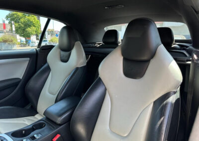 4 Oeilletons de fixation dans le coffre,Accoudoir central AV avec vide poches,Advanced Key Système d’autorisation d’accès et de démarrage main libre,Airbags grand volume pour conducteur et passager AV avec détecteur de la position assise airbag conducteur à 2 niveaux de gonflement,Airbags latéraux (airbag thorax et bassin à l’AV),Allume-cigare intégré au cendrier à l’AV,Antipatinage électronique ASR,Applications décoratives en aluminium brossé mat,Approche-ceintures AV automatique,Appuis-tête AR,Appuis-tête AV réglables en hauteur,Arceaux de sécurité actifs,Audi Hold Assist,Audi Tracking System: Système d’immobilisation et de localisation par satellite,Audi Tracking System: Système d’immobilisation et de localisation par satellite Système de tracking par satellite,Avertisseur 2 tons sur le moyeu du volant,Becquet AR intégré au couvercle de coffre,Blocage électronique de différentiel EDS,Boîte à gants verrouillable,Calandre Singleframe noire brillante avec inserts chromés,Capot de coffre à ouverture automatique (fermeture manuelle),Capote acoustique,Capote entièrement automatique en tissu isolant 3 couches, pouvant être activée jusqu’à 50 km/h,Carrosserie galvanisée (entièrement galvanisée aux endroits sensibles à la corrosion),Ceintures de sécurité, automatiques à 3 points pour les 4 places, avec contrôle de port à l’AV,Cendriers AV et AR,Cendriers dans la console centrale à l’AV et à l’AR,Châssis Sport S avec suspensions et amortisseurs plus fermes,Ciel de capote en tissu, selon la couleur choisie, argent étoile ou noir,Climatisation automatique Confort Plus 3 zones à fonctionnalités étendues et affichage numérique,Colonne de direction de sécurité complète le potentiel de protection des ceintures et des airbags,Contact d’allumage,Contrôle de pression des pneus, vérifie durant la marche la pression de chacune des roues,Cric, rangé dans le coffre,Désactivation de l’airbag passager (désactive aussi l’airbag latéral passager),Détecteur de pluie et de luminosité,Dossier de banquette AR rabattable séparément,Dossier des sièges AR rabattable séparément 50/50,Eclairage intérieur à temporisation et contacteurs sur toutes les portières; éclairage du coffre,Ecrous antivol,Etui à lunettes dans le module d’éclairage intérieur AV au dessus du rétroviseur intérieur,Filet coupe-vent,Fonction clignotement d?autoroute: une brève impulsion du comodo active trois cycles de clignotement,Fonction Start & Stop Coupure et redémarrage automatiques du moteur en cas d’arrêt prolongé au point mort,Frein de stationnement électromécanique,GPS Plus: système de navigation GPS de 3ème génération avec DVD Europe commandé par le MMI,Indicateur d’usure des disques à l’AV, affichage sur le système d’information du conducteur,Indicateur de rapport de vitesse dans le système d’information du conducteur,Indicateur de température extérieure,Instrumentation avec éclairage réglable,Jantes en aluminium coulé style S 5 branches doubles, 8.5J x 18,Lave-glace 2 vitesses,Lève-vitres électriques AV et AR avec protection anti-pincement et fonction Confort ouverture/fermeture par impulsion,Limiteurs d’effort sur les ceintures de sécurité AV,Logement de capote à configuration variable,Lunette AR dégivrante avec minuterie,Ordinateur de bord couleur et système de contrôle Autocheck incluant programme Efficiency,Outillage de bord dans le coffre,Pack Eclairage,Pack Eclairage : commande intérieure de verrouillage des portières,Phares antibrouillard intégrés dans le bouclier AV,Poignées de portières extérieures laquées dans la couleur de carrosserie,Préparation attelage,Préparation Isofix pour sièges latéraux AR et sièges passager AV,Préparation pour téléphone 2W bi-bande (D et E),Prétensionneurs de ceintures de sécurité AV,Programme électronique de stabilisation ESP: relie ABS,Protection antidémarrage électronique, activation automatique au moyen de la clé du véhicule,Quattro: transmission intégrale permanente avec répartition asymétrique et dynamique du couple,Rangement dans la contre-porte à l’AV avec casier de rangement pour boissons et rangements AR sur les côtés du siège et dans les garnitures latérales AR,Réglage d’appuis lombaires électriques sur 4 plans pour sièges AV,Régulateur de vitesse électronique,Rétroviseur intérieur jour/nuit automatique avec bande grise en haut du pare-brise,Rétroviseurs extérieurs avec clignotant latéraux intégrés à diodes,Roue de secours temporaire,Sellerie mixte cuir/Alcantara,Sellerie mixte Cuir/Alcantara: partie centrale des sièges en Alcantara,Servotronic, direction asservie à la vitesse,Sideguard : airbags de tête,Sièges AV chauffants,Sièges AV électriques pour longueur, hauteur, inclinaison d’assise et de dossier,Sièges AV Sport,Sorties d’échappement chromées,Sorties d’echappement chromées,Style aluminium,Système acoustique d’aide au stationnement AR,Système audiophonique Audi amplificateur à 6 canaux,Système de freinage à double circuit en diagonale,Tapis complémentaires AV et AR en velours, couleur noir,Tapis complémentaires en velours AV et AR,Télécommande à fréquence radio pour le verrouillage centralisé,Triangle de pré-signalisation et trousse à pharmacie,Verrouillage centralisé avec fonction Autolock et télécommande à fréquence radio,Verrouillage centralisé avec fonction Autolock et télécommande à fréquence radio intégrée dans la clé du véhicule,Verrouillage électrique de la colonne de direction,Vitres athermiques teintées vertes et pare-brise en verre feuilleté,Volant airbag Sport 3 branches multifonctions avec emblème S5,Volant réglable en hauteur et en profondeur,Xénon Plus incluant réglage automatique du site des phares