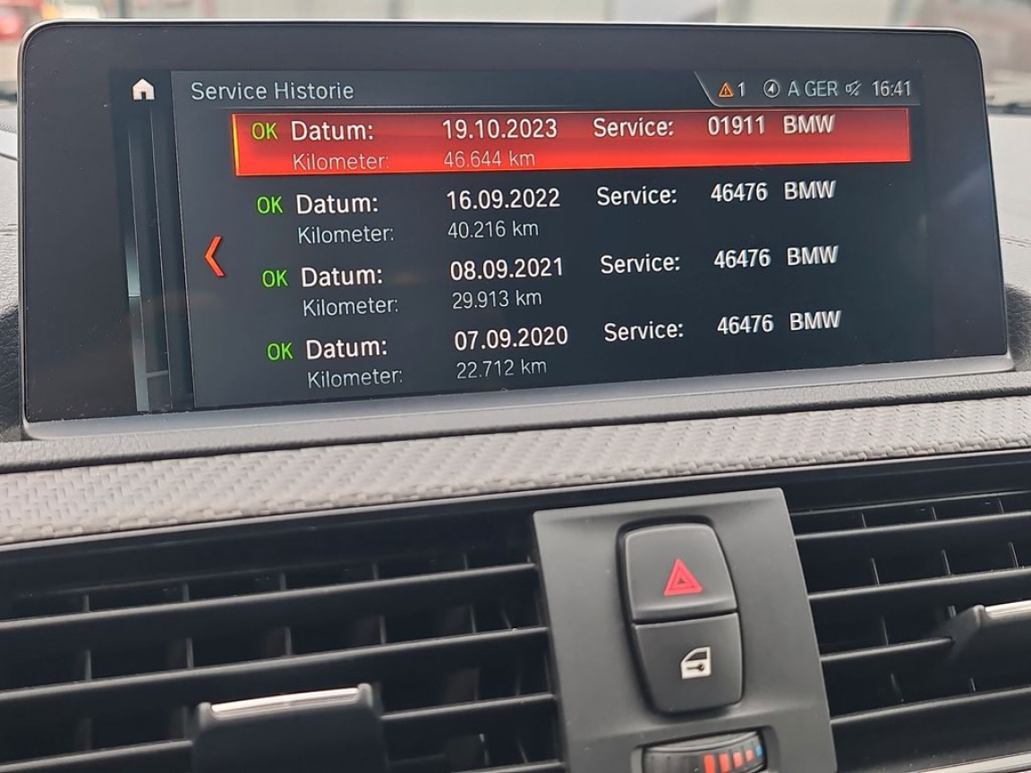 2 doubles sorties d’échappement rondes et chromées, à gauche et à droite,3ème feu stop,ABS, y compris assistant de freinage,Accoudoir central AV coulissant,Airbag passager déconnectable,Airbags frontaux conducteur et passager AV,Airbags latéraux AV,Alarme antivol,Anneaux d’arrimage dans le coffre sur le seuil de chargement,Antenne ,Antidémarrage électronique EWS IV,Appel d’Urgence Intelligent (durée de vie de la voiture),Appuie-tête AR rabattables,Appuis-tête AR rabattables,Appuis-tête et ceintures de sécurité 3 points à toutes les places,Autoradio BMW Professional,Banquette AR 2 places,Banquette AR rabattable 40/20/40,Barre de renfort en carbone dans le compartiment moteur,BMW Tracking System,Boîte de vitesses M DKG 7 rapports à double embrayage avec Drivelogic,Bouton de démarrage ,Calandre avec cadre en noir brillant et doubles barreaux verticaux noirs et logo ,Ceintures de sécurité noires avec liserés aux couleurs M,Ciel de pavillon ,Clés radiocommandées à mémorisation automatique des réglages ,Climatisation automatique 3 zones (réglages séparés gauche/droite,Console centrale laquée noire,Construction allégée intelligente BMW EfficientDynamics,Contrôle de freinage en courbe CBC,Contrôle dynamique de stabilité DSC+ avec fonctionnalités étendues et M Dynamic Mode,Contrôle dynamique de traction DTC,Coques de rétroviseurs extérieurs couleur carrosserie,Démarrage sans clé via le bouton Start/Stop,Désignation du modèle,Détecteur de pluie et allumage automatique des projecteurs,Détection de l’occupation du siège passager AV,Déverrouillage électrique du coffre via la volet de coffre ou la clé radiocommandée,Différentiel Actif M à commande électronique avec blocage du couple variant de 0 à 100%,Direction Servotronic spécifique M à assistance variable en fonction de la vitesse,Eclairage d’accompagnement (extention retardée des projecteurs),Eclairage dans le coffre,Ecran d’information haute résolution pour le combiné d’instrumentation,Ecrous de roues antivol,Eléments extérieurs dans la teinte de la carrosserie,Feux antibrouillard AR,Feux AR surteintés,Feux de route permanents anti-éblouissement,Feux de stop bi-intensité,Fixations ISOFIX aux places AR,Fonction d’arrêt et de redémarrage automatique du moteur BMW EfficientDynamics,Fonctions ,Gestionnaire M Drive,Inscription ,Inserts décoratifs brillants ,Interface Bluetooth et port USB,Jantes en alliage léger 19,Kit de mobilité BMW,Kit Eclairage,Kit fumeur,Kit rangement,Lève-vitres AV électriques avec commande par impulsion et protection anti-coincement,Levier sélecteur de boîte de vitesses orné du logo M,Limiteur et régulateur de vitesse avec maintien de la vitesse en descente,Mesure individuelle de pression des pneumatiques avec 3 niveaux d’alerte,Miroir asphérique côté conducteur, rappel de clignotants intégrés,Navigation multimédia Professional,Ordinateur de bord, Check-Control et indicateur de température extérieure,Ouies latérales au traité en relief avec entourage en noir brillant, avec inscription ,Pack Advanced Full LED,Pare-chocs AR au design spécifique avec diffuseur (couleur carrosserie),Pare-chocs AV au design spécifique avec 2 grandes prises d’air,Porte-gobelets sur la console centrale,Prise audio USB,Prise de courant 12V dans la console centrale,Régulateur de vitesse avec fonction freinage,Repose-pieds M pour le conducteur,Rétroviseur intérieur électrochrome,Rétroviseurs extérieurs à réglages électriques et dégivrants,Rétroviseurs extérieurs électrochromes rabattables électriquement,Rétroviseurs extérieurs rabattables électriquement / Rétroviseur gauche électrochrome,Rétroviseurs extérieurs spécifiques M aérodynamiquement optimisés,Sellerie cuir Dakota pour Sièges Advanced ,Services Après-vente connectés BMW TeleServices,Services ConnectedDrive (3 ans),Seuils de portes avec inscription ,Shadow Line brillant BMW Individual,Shadow Line brillant BMW Individual étendu,Sièges Advanced pour conducteur et passager AV,Sièges AV chauffants,Sièges conducteur et passager réglables en hauteur,Système d’aide au stationnement PDC AV et AR,Système d’échappement équipé de 2 volets à commande électrique,Système de récupération de l’énergie au freinage BMW EfficientDynamics,Tapis de sol en velours,Technologie BMW M TwinPower Turbo avec suralimentation à deux turbocompresseurs,Teinte de carrosserie unie (Alpinweiss),Touches multifonctions sur le volant,Train roulant de conception M avec liaison essieu/carrosserie raffermie et bras transversaux,Triangle de présignalisation avec kit de premiers secours,Verrouillage automatique des portes dès 15 km/h environ,Verrouillage centralisé des portes, du coffre et de la trappe à carburant,Vide-poches ergonomiques dans les portes AV,Volant M gainé cuir avec touches multifonctions, 2 touches M Drive
