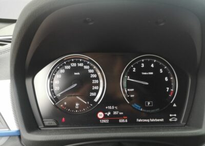 3ème feu stop,6 haut-parleurs dont 2 caissons de basse sous les sièges avant, amplification 4 x 25w,ABS avec assistant de freinage d’urgence,Accès Confort (ouverture et fermeture sans clé),Accoudoir central AV réglable sur 5 positions avec compartiment de rangement,Active Guard : avertisseur de collision AV avec fonction freinage ainsi que de collision avec protection active des piétons et des cyclistes,Airbag passager AV déconnectable,Airbags de tête AV et AR avec voile de protection contre les débris de verre,Airbags frontaux conducteur et passager AV,Airbags latéraux AV,Anneau bleu autour de l’emblème BMW sur le capot, le hayon, le volant et les moyeux de roue,Antenne aileron de requin,Antibrouillard LED (3 LEDs horizontales),Antidémarrage électronique EWS IV,Appel d’Urgence Intelligent,Appui lombaire ajustable électriquement pour sièges AV,Attention Assist: Signale la perte de vigilance du conducteur,Autoradio BMW Professional avec écran couleur 6,Avertisseur de risque de collision,Avertisseur sonore pour piétons,Banquette AR rabattable en 3 parties (40/20/40),BMW EfficientDynamics,Boîte à gants verrouillable éclairée,Boîte de vitesses automatique à 6 rapports,Buses de lave-glace chauffantes,Câble de recharge Domestique (5m) – Mode 2 pour prise domestique,Câble de recharge T2-T2 (5m) Monophase 7kW – Mode 3 pour la recharge sur borne de recharge,Caméra de recul,Ceintures de sécurité à 3 points d’ancrage à toutes les places avec limiteur d’effort,Ciel de pavillon M anthracite,Clé radiocommandée à mémorisation automatique des réglages ,Climatisation automatique bi-zone,Commande électrique du hayon,Construction allégée intelligente BMW Efficient Dynamics,Contrôle de la transmission,Contrôle Dynamique de Stabilité DSC+ avec fonctionnalités étendues (y compris assistant de démarrage en côte),Contrôle dynamique de traction DTC,Crochets de fixation pour cintre (2 à l’AR),Démarrage sans clé via le bouton Start/Stop,Designation du modèle,Détecteur de pluie et allumage automatique des projecteurs,Déverrouillage électrique du hayon via la poignée ou la clé radiotélécommandée,Différentiel à blocage électronique,Diffuseurs aérodynamiques AV ,Direction à assistance électrique BMW Efficient Dynamics,Direction Servotronic à assistance variable en fonction de la vitesse,Eclairage de l’habitacle à l’AV, à l’AR et dans le coffre,Ecrous de roues antivol,Eléments extérieurs (poignées de portes) couleur carrosserie,Feux antibrouillard AR,Feux de stop dynamiques clignotants,Fixation ISOFIX aux places latérales AR,Fonction d’arrêt et de redémarrage automatique du moteur BMW Efficient Dynamics,Fonction eDrive Connected (3 ans),Frein de parking électromécanique,Indicateur de limitation de vitesse,Inserts décoratifs M Aluminium Hexagon soulignés de bleu mat,Interface Bluetooth avec fonction streaming audio,Jantes en alliage léger 18,Kit de rangement,Kit éclairage,Lève-vitres AV/AR électriques avec commande par impulsion et sécurité enfants,Ligne M Sport,Limiteur et régulateur de vitesse avec maintien de la vitesse en descente,Mesure individuelle de pression des pneumatiques,Montant B en noir brillant,Motorisations BMW TwinPower Turbo: Essence : composé d’une suralimentation Twin Scroll,Navigation multimédia Business,Notice d’utilisation de la voiture intégrée et carnet d’entretien électronique avec BMW Service History,Ordinateur de bord, Check Control et indicateur de température extérieure,Pack Confort,Pack SimpliCity,Pack Sport M,Park Assist,Port USB avec connectivité iPod et prise AUX IN,Projecteurs AV halogènes avec feux de jour à LED,Projecteurs LED,Radars de stationnement AR PDC,Rails de toit Shadow Line M brillant,Respect de la norme EU6 BMW Efficient Dynamics,Rétroviseur intérieur électrochrome,Rétroviseurs extérieurs couleur carrosserie à réglages électriques et dégivrants,Rétroviseurs extérieurs électrochromes (côté conducteur) et rabattables électriquement,Rétroviseurs extérieurs rabattables électriquement,Sélecteur de mode de conduite – 3 modes : ECO PRO, Comfort, Sport,Sellerie Tissu / Similicuir Sensatec,Services Après-vente connectés BMW TeleServices,Services ConnectedDrive,Services eDrive,Seuils de porte avec inscription BMW,Shadow Line M brillant,Sièges Advanced pour conducteur et passager AV,Sièges AV chauffants,Sièges AV électriques à mémoires conducteur,Sièges conducteur et passager réglables en hauteur,Sortie d’échappement simple à gauche, ronde et chromée, diamètre de 90 mm,Système anti-collision à basse vitesse,Système de récuperation de l’énergie au freinage BMW Efficient Dynamics,Tapis de sol en velours,Touches multifonctions sur le volant,Trappe de recharge électrique coté conducteur avec badge ,Triangle de présignalisation avec kit de premiers secours,Tuner DAB,Verrouillage automatique des portes dès 15km/h environ,Verrouillage centralisé des portes, coffres et trappe à essence,Vitres teintées vertes,Volant 3 branches gainé cuir réglable en hauteur et en profondeur,Volant M gainé cuir,Welcome Pack BMW avec carte BMW Charging