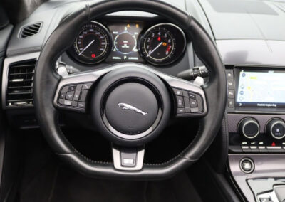 2 Prises 12V,Alarme périmétrique avec coupe-circuit intégré,Allumage automatique des phares,Climatisation automatique,Climatisation avec ouïes centrales escamotables automatiquement,Colonne de direction réglable électriquement,Console centrale Dark Technical Weave badgé R,Contrôle de stabilité DSC déverrouillable,Contrôle Dynamique de Stabilité déverrouillable,Détecteur de pluie,Différentiel actif électronique avec commande vectorielle de couple,Différentiel actif électronique avec Torque Vectoring,Double porte-verres,Double porte-verres AV,Dynamique de conduite configurable avec menu spécifique via l’écran tactile,Echappement Sport actif,Echappement Sport actif modulable depuis l’habitacle,Eclairage intérieur ambiant modulable 5 tons: du bleu phosphorescent au rouge,Ecran tactile 8,Essuie-glace AV automatiques avec détecteur de pluie,Etriers de freins Rouge,Etriers de freins Rouges,Feux AR avec éclairage par LED,Filet de rangement entre les 2 sièges,Finition chromée des entourages de grille de calandre et des ouïes latérales,Finition Dark Hex Aluminium,Finition Ignis sur les palettes du volant, les boutons de démarrage et de mode de conduite,Finition noire brillante sur les ouïes d’aération du capot,Frein de stationnement électronique avec desserrage automatique au démarrage,Freins Super Performance (380mm à l’AV et 376mm à l’AR),Freins Super Performance (380mm à l’AV et 376mm à l’AR) avec étriers noirs,Garnissage de pavillon et pare-soleil en morzine Jet,Garniture de console en finition Dark Technical Weave Aluminium,InControl Protect,Interface média AV avec prises auxiliaires et prise USB,Jaguar Smart Key System avec démarrage sans clé,Jantes en alliage 20,Jantes en alliage 20,Jantes en alliage 20,Kit de réparation de pneu Jaguar,Kit premier secours,Lève-vitre électrique à impulsion,Logo R sur l’AR,Lumière d’ambiance configurable (5 tons),Ordinateur de bord avec affichage central de 5,Pack Finition Cuir,Pavillon en Morzine Jet,Peinture vernie,Phares au Xénon avec feux de jour à LED et lave-phares,Phares au Xénon avec feux de jour à LED et lave-phares/Feux AR à LED,Poignées de portes escamotables,Quadruple sortie d’échappement,Radio AM/FM avec lecteur de CD en façade compatible MP3,Réglages des sièges en 6×6 directions AV/AR manuel, inclinaison et hauteur électriques,Rétroviseur intérieur à inversion Jour/Nuit automatique,Rétroviseur intérieur jour/nuit automatique,Rétroviseurs extérieures chauffants et réglables électriquement,Rétroviseurs extérieures chauffants, réglables électriquement avec rappel de clignotants,Sélecteur de vitesses séquentiel avec palettes au volant,Sièges Performance habillés de cuir premium et griffés ,Sièges Performance R Cuir Premium,Sièges Sport en Cuir réglables en 6 directions (manuel pour le réglage AV et AR et électrique pour la hauteur de l’assise et l’inclinaison du dossier),Spoiler AR à déploiement automatique,Spoiler déployable électriquement,Suspension R,Système ABS avec aide au freinage d’urgence et répartiteur électronique de la force de freinage,Système Audio Jaguar 180W à 6HP avec Radio AM/FM,Système Audio Jaguar 190W avec 6HP,Système de contrôle de la pression des pneus (TPMS),Système de réparation de pneu Jaguar,Tapis de sol R,Tapis de sol R avec coutures contrastées,Technologie Stop/Start,Transmission automatique QuickShift à 8 rapports avec mode Hiver et mode Dynamique,Volant R avec palettes Ignis,Volant R en Cuir et palettes Argent,Volant Sport à base plate orné du logo