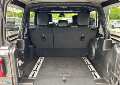 ABS – Système antiblocage des roues,Airbags frontaux + latéraux,Allumage automatique des feux,Banquette AR rabattable en 2 parties,Cable recharge mode 2 type 2,Calandre couleur carrosserie,Caméra de recul,Capteur de luminosité (allumage automatique des feux),Capteurs de stationnement AV,Climatisation automatique Bi-zone,Couvre roue de secours souple noir,Crochets de remorquage bleus,Détecteur d’angle mort et de présence AR,Elargisseurs d’ailes couleur carrosserie,ESP – Système de régulation de comportement dynamique,Feux de route automatiques,Hard top modulaire Freedom Top couleur carroserie (3 pièces),Jantes alliage 18,Kit fumeur,Limiteur de vitesse,Marche-pieds,Ordinateur de bord,Ouverture et démarrage sans clé,Pack Sécurité,Pare-soleil avec miroir éclairé,Porte-gobelets rétroéclairés,Prise auxiliaire 12v AV+AR,Projecteurs à LED,Projecteurs antibrouillard AV,Radars de recul,Répartiteur électronique de freinage,Rétroviseur intérieur photochromatique,Rétroviseurs avec réglage électrique et fonction dégivrage,Revêtement intérieur insonorisant sur le Hard top,Sellerie Tissu Premium,Siège conducteur réglable 6 points + lombaire 2 points,Siège passager réglable 4 points,Système audio Premium Alpine 8,4 »+8 HP+Subwoofer,Système de contrôle de la pression des pneus,Système de navigation à écran tactile Uconnect 8,4 »avec Apple CarPlay et Android Auto,Tapis de sol et de coffre,Transmission intégrale Command Select-Trac Time 2.72:1,Verrouillage centralisé avec télécommande,Vitres AR surteintées,Vitres électriques,Volant cuir multifonction + pommeau de levier de vitesses cuir