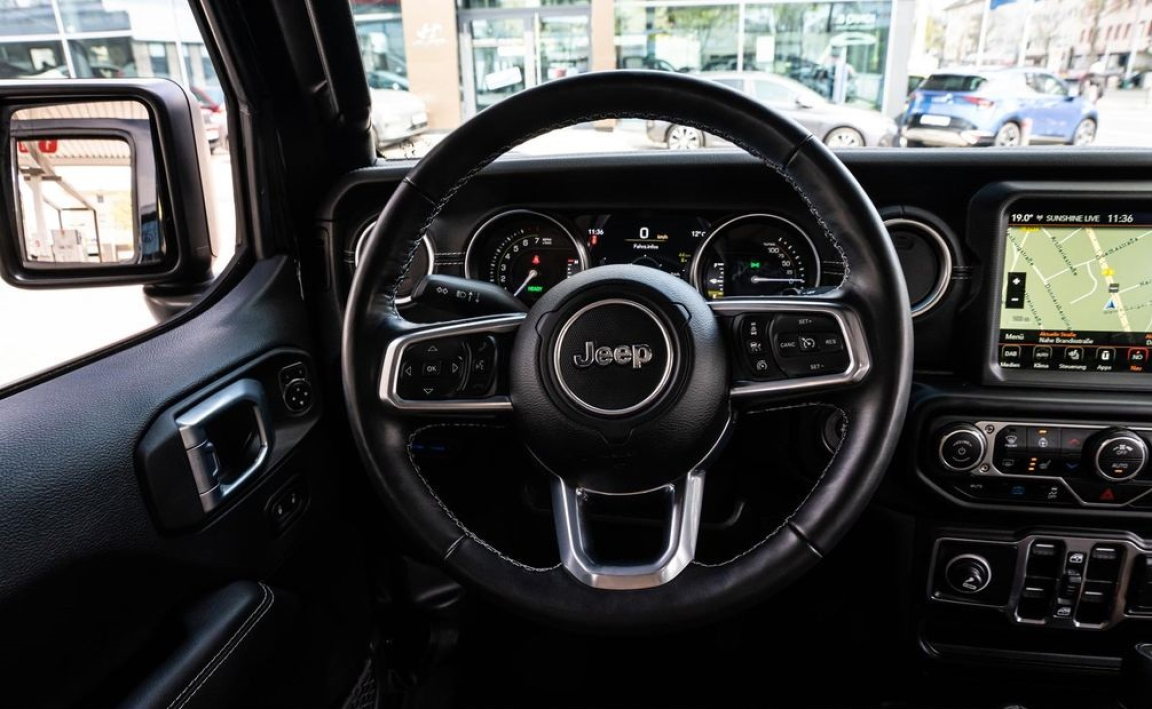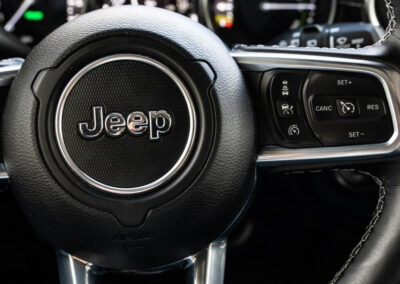 ABS – Système antiblocage des roues,Airbags frontaux + latéraux,Allumage automatique des feux,Banquette AR rabattable en 2 parties,Cable recharge mode 2 type 2,Calandre couleur carrosserie,Caméra de recul,Capteur de luminosité (allumage automatique des feux),Capteurs de stationnement AV,Climatisation automatique Bi-zone,Couvre roue de secours souple noir,Crochets de remorquage bleus,Détecteur d’angle mort et de présence AR,Elargisseurs d’ailes couleur carrosserie,ESP – Système de régulation de comportement dynamique,Feux de route automatiques,Hard top modulaire Freedom Top couleur carroserie (3 pièces),Jantes alliage 18,Kit fumeur,Limiteur de vitesse,Marche-pieds,Ordinateur de bord,Ouverture et démarrage sans clé,Pack Sécurité,Pare-soleil avec miroir éclairé,Porte-gobelets rétroéclairés,Prise auxiliaire 12v AV+AR,Projecteurs à LED,Projecteurs antibrouillard AV,Radars de recul,Répartiteur électronique de freinage,Rétroviseur intérieur photochromatique,Rétroviseurs avec réglage électrique et fonction dégivrage,Revêtement intérieur insonorisant sur le Hard top,Sellerie Tissu Premium,Siège conducteur réglable 6 points + lombaire 2 points,Siège passager réglable 4 points,Système audio Premium Alpine 8,4 »+8 HP+Subwoofer,Système de contrôle de la pression des pneus,Système de navigation à écran tactile Uconnect 8,4 »avec Apple CarPlay et Android Auto,Tapis de sol et de coffre,Transmission intégrale Command Select-Trac Time 2.72:1,Verrouillage centralisé avec télécommande,Vitres AR surteintées,Vitres électriques,Volant cuir multifonction + pommeau de levier de vitesses cuir