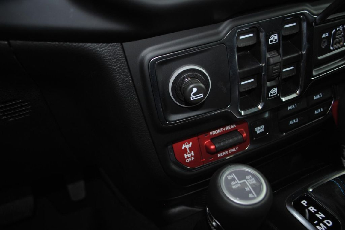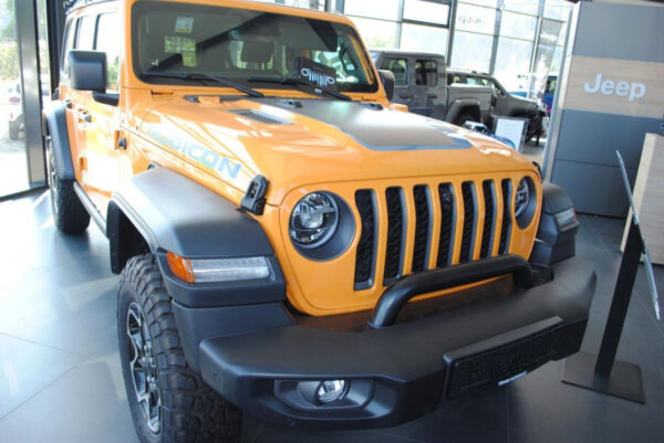 ABS – Système antiblocage des roues,Airbags frontaux + latéraux,Banquette AR rabattable en 2 parties,Barre stabilisatrice AV à désengagement électronique,Barres de protection latérales Rock-Rails,Blocage des différentiels AV et AR Tru-Lock,Cable recharge mode 2 type 2,Calandre couleur carrosserie,Caméra AV,Caméra de recul,Capote souple Sunrider Premium noire,Capteur de luminosité (allumage automatique des feux),Capteurs de stationnement AV,Climatisation automatique Bi-zone,Couvre roue de secours souple noir,Détecteur d’angle mort et de présence AR,Elargisseurs d’ailes non peints,ESP – Système de régulation de comportement dynamique,Jantes alliage 17,Kit fumeur,Limiteur de vitesse,Ordinateur de bord,Ouverture et démarrage sans clé,Pare-soleil avec miroir éclairé,Porte-gobelets rétroéclairés,Prise auxiliaire 12v AV+AR,Projecteurs à LED,Projecteurs antibrouillard AV,Radars de recul,Répartiteur électronique de freinage,Rétroviseur intérieur photochromatique,Rétroviseurs avec réglage électrique et fonction dégivrage,Sellerie Tissu Premium,Siège conducteur réglable 6 points + lombaire 2 points,Siège passager réglable 4 points,Stickers de capot,Système audio Premium Alpine 8,4 »+8 HP+Subwoofer,Système audio Premium Alpine 8,4 »+9 HP+Subwoofer,Système de contrôle de la pression des pneus,Système de navigation à écran tactile Uconnect 8,4 »avec Apple CarPlay et Android Auto,Tapis de sol et de coffre,Transmission intégrale Rock-Trac Full Time 4:1,Verrouillage centralisé avec télécommande,Vitres AR surteintées,Vitres électriques,Volant cuir multifonction + pommeau de levier de vitesses cuir