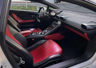 4 haut-parleurs (2 woofers + 2 tweeters),Airbags conducteur et passager à double déploiement,Airbags latéraux tête et thorax,Alcantara multicouche en partie supérieure du tableau de bord et des panneaux de portes,Badge rappelant la dénomination du véhicule (LP 610-4) sur aile arrière,Barres de renfort latéral dans la structure de porte,Boîte à double embrayage Lamborghini Doppia Frizione (LDF) à 7 rapports,Boîtes à gants fermées sur la planche de bord et le panneau central arrière,Carrosserie légère en aluminium,Ceintures de sécurité trois points avec prétensionneurs,Châssis léger de construction hybride en aluminium et fibre de carbone,Climatisation automatique bizone avec filtre à charbon actif intégré,Colonne de direction rétractable,Compartiment de rangement additionnel sous la console centrale avant (dimensions convenant à la plus part des téléphones mobiles),Compartiments de rangement dans les portes,Concept d’éclairage Full-LED incluant : feux de jour en double Y,Concept de volant à contrôle entièrement intégrée,Contrôle de pression des pneus (TPMS),Contrôle électronique de stabilité (ESC) avec réglages Lamborghini incluant ABS, ASR et EBD,Coupé deux places,Coutures ton sur ton,Coutures ton sur ton dans l’habitacle,Design aérodynamique intégré à la carrosserie,Direction électrique à assistance variable (EPS),Disque de freins carbo-céramiques perforés à ventilation interne,Ecran d’instrumentation 12.3 » TFT avec visualisation adaptative,ECU (Electronic Control Units) totalement intégrées,Equipements incomplets,Etriers de freins Argent,Fonction de contrôle de lancement (mode poussée en CORSA et démarrage course en SPORT),Freins en Carbone Céramique avec Etriers de freins peints couleur Argent,Full 12.3 » TFT color display instrument cluster with adaptive visualization,Garnissage pavillon et pare-soleils en tissu technique,Harnais à câblage modulaire,Immobiliseur,Interface mulitimédia incluant les connexions USB et iPod/IPhone,Intérieur standard monocolore ; garnissage cuir souple de haute qualité majoritairement monocolore incluant : volant,Intérieur Unicolor en Cuir,Jantes 20 » Giano argent,Jantes 8.5Jx20 » Giano avec pneus 245/30 R20 à l’AV et 11Jx20 » Giano avec pneus 305/30 R20 à l’AR,Kit de gonflage avec compresseur d’air électrique,Lamborghini smartphone interface (Apple carplay and Android auto),Logo Lamborghini chromé à l’AR,Miroirs de courtoisie dans les pare-soleils,Montage aérodynamique des poignées de portes extérieures,Moyeux de roues avec logo Lamborghini en couleur,Panneau de climatisation TFT couleur affichant les principales informations sur la climatisation et les jauges virtuelles,Rétroviseur intérieur électrochromatique,Rétroviseurs réglables,Sélecteur de modes de conduite dynamique au volant (STRADA-SPORT-CORSA) agissant sur: moteur,Sièges sport avec réglage électrique du dossier et de la hauteur et réglage manuel en longueur,Soubassement entièrement cloisonné avec prises d’air de refroidissement NACA intégrées,Suspension indépendante à double triangulation avec barres antiroulis à l’AV et à l’AR,Système anti-blocage (ABS) intégré à l’ESC,Système lave-glaces avec deux vitesses d’essuie-glace et ajustage de l’intermittence,Tapis de sol gansés nubuck,Tapis insonorisants de haute qualité,Télécommande de verrouillage (y compris coffre),Transmission à quatre roues motrices avec embrayage multidisque à bain d’huile contrôlé électroniquement,Verrouillage automatique,Vitres électriques à commande automatique,Vitres et pare-brise teintés sombres,Volant multifonction en Cuir souple,Zones de déformation avant et arrière avec boucliers intégraux en aluminium