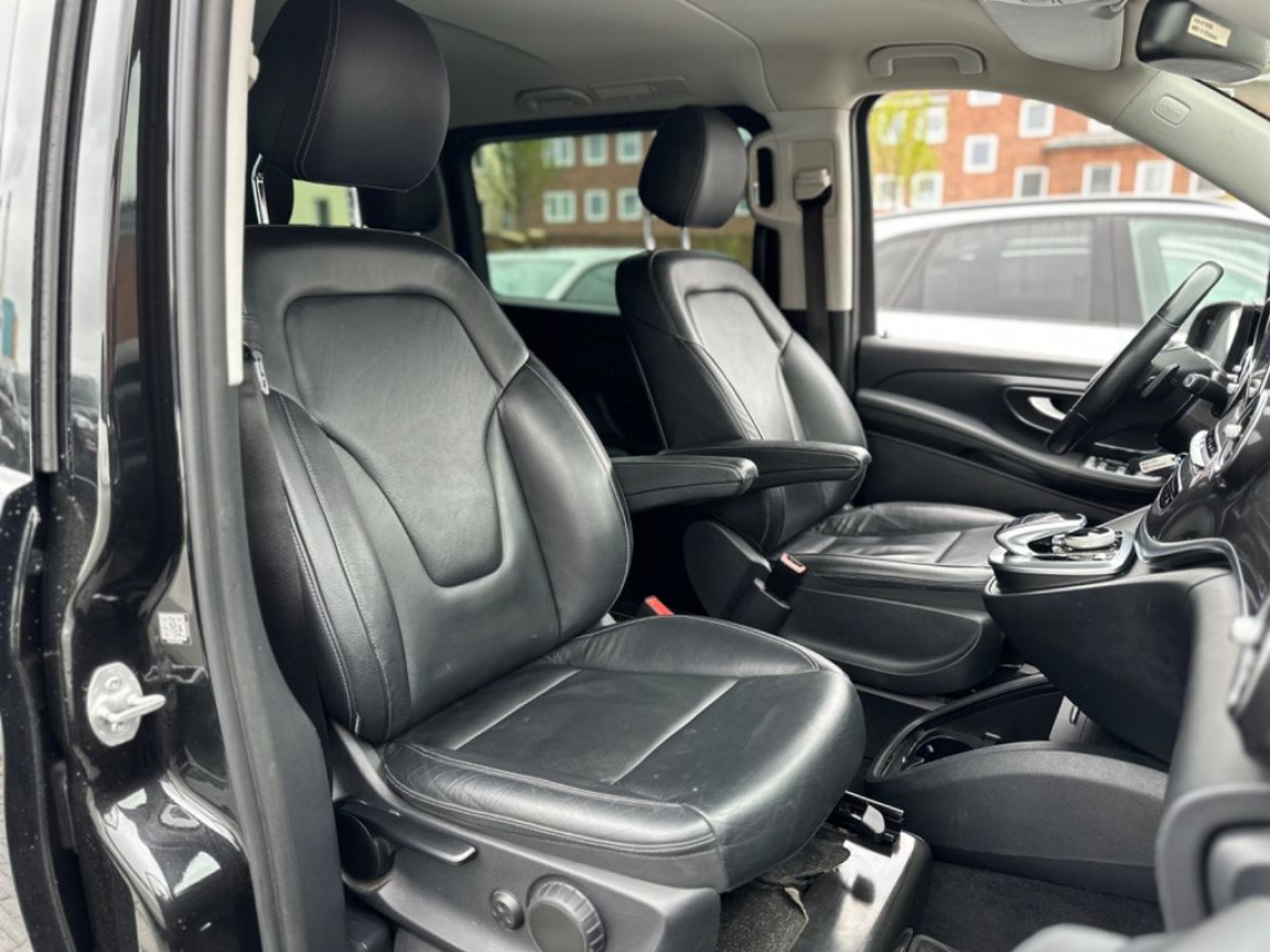 ABS (anti-blocage de roues) et BAS (freinage d’urgence assisté),ADAPTATIVE BRAKE avec fonction HOLD (Aide au démarrage en côte),Airbags frontaux conducteur et passager AV,Airbags latéraux AV,Airbags rideaux,Allumage automatique des projecteurs par capteur de luminosité,APA (Aide au parking active): Système d’aide au stationnement avec radars AV et AR et fonction manoeuvres automatiques,Applications chromées au niveau de la ceinture de caisse et du hayon AR,Applications chromées au niveau du pare-chocs AV,Attelage: Prééquipement électrique pour l’installation ultérieure d’un attelage,Attention Assist: Système de détection de somnolence,Avertisseur de perte de pression des pneus,Baguettes de seuils de portes éclairées avec monogramme Mercedes-Benz,Boîte à gants verrouillable,Boîte de vitesses automatique à 7 rapports 7G-TRONIC PLUS avec fonction Stop/Start ECO et levier sélecteur DIRECT SELECT avec palettes de commande au volant,Calandre à 2 lamelles avec étoile intégrée,Caméra de recul avec lignes de guidage,Ciel de pavillon gris,Clé design avec insert chromé,Climatisation AR additionnelle,Climatiseur automatique Thermotronic 2 zones (conducteur et passager AV),Colonne de direction réglable manuellement en hauteur et en profondeur,COMAND Online: Système multimédia avec Lecteur DVD,Commande électrique pour portes latérales coulissantes,CROSSWIND ASSIST: Système de correction de trajectoire en cas de vent latéral,Détecteur de pluie,Echangeur thermique supplémentaire à l’AR,Eclairage d’ambiance du compartiment passager: Au niveau des garnitures latérales,ESP (régulation de comportement dynamique) et ASR (antipatinage),Etriers de freins 17,Feux de stop adaptatifs,Filets de rangement au dos des sièges AV,Frein de stationnement électrique,Garnitures intérieures et sièges en cuir Nappa,Inserts décoratifs également présents à l’AR,Inserts décoratifs façon ébène anthracite foncé brillant,Intelligent Light System (ILS) à LED: Projecteurs haute performance à technologie LED avec répartition variable de l’éclairage,ISOFIX : fixations pour sièges enfants AR,Jantes alliage 18,Lève-vitres électriques à l’AV avec commande confort et dispositif anti-pincement,Lunette AR à ouverture séparée,Mercedes Me Connect,Pack BlueEFFICIENCY,Pack d’Assistance de trajectoire,Pack Extérieur Sport Avantgarde,Pack Intérieur Design Avantgarde,Pack Rétroviseurs,Pare-chocs, rétroviseurs extérieurs et poignées de portes couleur carrosserie,Pédalier Sport en aluminium brossé,Peinture Standard,Planche de bord en simili-cuir avec surpiqûre,Planche de bord façon cuir avec surpiqûres contrastées,Porte latérale droite coulissante,Porte latérale gauche coulissante,Prise 12 V à l’AV,Projecteurs avec feux de jour intégrés,Radio Audio 20 avec écran couleur 7,Rails de siège anodisés noir,Rétroviseurs extérieurs électriques,Sécurité enfants aux portes AR,Siège conducteur et passager AV avec réglage lombaires,Siège conducteur et passager AV avec réglages électriques et fonction mémoires (x3),Sièges AV confort réglables manuellement en hauteur avec un accoudoir,Sièges conducteur et passager AV chauffants,Sièges individuels 1ère rangée,Sièges individuels 2eme rangée,Sièges individuels AR avec 2 accoudoirs (x4),Subdivision du compartiment de chargement,Suspension et train de roulement sport (-15 mm),Système de rails pour l’ancrage des sièges,Télécommande de verrouillage central et fermeture confort,Tempomat (régulateur de vitesse) et Speedtronic (limiteur de vitesse),TOUCHPAD: pavé tactile permettant la navigation dans les menus audio,Triangle de présignalisation,Vitrage acoustique renforcée,Vitres teintées noires: Traitement teinté foncé des vitres latérales et de la lunette AR,Volant gainé cuir,Volant multifonctions