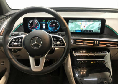 2 prises USB à l’AR,Affichage de l’état des ceintures AR (bouclées/non bouclées) sur le combiné d’instruments,Aide au Parking PARKTRONIC,Airbag genoux pour conducteur,Airbags frontaux conducteur et passager AV,Airbags latéraux pour le conducteur et le passager AV (airbags combinés thorax et bassin),AMG Line intérieur et extérieur,Assistant de signalisation routière,Assistant ECO : informations visuelles (limitations de vitesse,Assistant feux de route Plus,ATTENTION ASSIST,Autoradio numérique,Baguettes de seuil éclairées,Baguettes de seuil éclairées avec monogramme ,Buses de ventilation avec avec lamelles de couleur or rose,Câble de charge pour boîtier mural et borne de recharge publique, 5 m, plat, 22 kW / 32 A,Câble de charge pour boîtier mural et bornes de recharge publiques, 4 m, 22 kW / 32 A,Câble de charge pour boîtier mural et bornes de recharge publiques,Câble de charge pour boîtier mural et bornes de recharge publiques, 4 m, spiralé,Câble de charge pour prise secteur, 4 m, spiralé,Câble de charge pour prise secteur, 5 m, plat,Cache-bagages EASY-PACK amovible,Caméra de recul,Chargeur embarqué courant alternatif de 7,4 kW,Chargeur embarqué courant continu de 110 kW,Chargeur en courant alternatif (AC) 11 kW,Ciel de pavillon en tissu noir,Climatisation automatique THERMATIC à 2 zones,Combiné d’instrumentation numérique de 10,25,Combiné d’instrumentation numérique de 10,25 »,Compartiment de chargement et rangements,Compartiment de rangement dans la console centrale avec anse rétractable,Contrôle de la pression des pneumatiques,Désactivation automatique de l’airbag passager AV,Détecteur d’angle mort,Détection de siège-enfant,Documentation en français,Documents COC Euro 6,Double porte-gobelets,DYNAMIC SELECT,DYNAMIC SELECT avec un choix de modes de conduite : Eco,Eclairage actif dans les virages,Eclairage d’ambiance,Eclairage d’intersection avec fonction carrefour,Ecran média 10,25,Equipement pour radio digitale,Essuie-glaces avec détecteur de pluie,Etriers de frein avec logo Mercedes-Benz,Extérieur AMG Line,Fonction de démarrage sans clé KEYLESS-GO,Fonction Start/Stop ECO,Fonctionnalités élargies MBUX avec reconnaissance vocale naturelle activée via ,Frein de stationnement électrique avec fonction Start Assist,Freinage d’urgence assisté actif,Garniture Similicuir ARTICO/Microfibre DINAMICA Noir,Garnitures avec surpiqûres dans le ton or rose,Grille de calandre Black-Panel avec cadre noir brillant et double lamelle Twin-Blade AMG,Grille de calandre Black-Panel spécifique AMG dans le design Twin-Blade avec cadre noir brillant,HANDS-FREE ACCESS,Hayon Easy-Pack avec ouverture et fermeture par commande électrique,Inserts décoratifs façon carbone anthracite,Interface USB dans le vide-poches,Intérieur AMG Line,Jantes alliage AMG 48,Jupe AR spécifique AMG plus large avec sorties d’air apparentes (non fonctionnelles),Jupe AR spécifique spécifique AMG avec sorties d’air apparentes,Jupe AV spécifique AMG au design Jet-Wing avec entrées d’air AIR CURTAINS,Jupe AV spécifique AMG au design Jet-Wing,KEYLESS-GO,Kit anti-crevaison TIREFIT,Kit carrosserie AMG,MBUX système multimedia,Module de communication LTE pour l’utilisation des services Mercedes connect me,MULTIBEAM LED,Navigation par disque dur,Pack avec contenus de confort étendus,Pack confort étendu,Pack Confort KEYLESS-GO,Pack Confort sièges AV,Pack Eclairage Intérieur,Pack Rangement,Pack Rétroviseurs,Pack SE,Pack Standard Europe,Pack Stationnement avec caméra de recul,Palettes de changement de rapport au volant DIRECT SELECT,Palettes de récupération d’énergie au volant,Pédalier sport AMG en acier brossé, avec picots en caoutchouc noirs,Peinture non métallisée Noir,Planche de bord en similicuir ARTICO gris argent métallisé et surpiqûres dans le ton or rose,Plaquette sur l’aile en noir brillant avec bandes chromées et monogramme EQC bleu,Pré-installation pour Mercedes-Benz Link,Prééquipement pour IONITY : Charge rapide à prix réduit1,Prééquipement pour le suivi du véhicule,Prééquipement pour les réglages du véhicule,Prééquipement pour les services à distance et de navigation,Prééquipement pour Live Trafic Information 1,Prééquipement pour Mercedes me Charge,Préequipement pour services de navigation,Prise 12 V dans le coffre,Prise de recharge,Programme de stabilité électronique (ESP) avec contrôle du dérapage à l’accélération (ASR),Projecteurs MULTIBEAM à LED,Projecteurs MULTIBEAM LED avec assistant feux de route adaptatifs,Projecteurs MULTIBEAM LED avec assistant feux de route,Protection contre les nuisances acoustiques environnantes,Régulateur de vitesse TEMPOMAT,Rétroviseurs extérieurs couleur carrosserie,Services de charge étendus et services à distance Premium,Sièges AR rabattus (40-20-40),Sièges sport aux contours spécifiques à AMG,Surpiqûres dans le ton gris moyen,Suspension pneumatique à l’AR,Système d’appel d’urgence Mercedes-Benz,Système de charge à courant alternatif,Système de navigation MBUX par disque dur,Système de sonorisation Advanced,Système de sonorisation avancé avec 9 haut-parleurs (225 Watts),Tableau de bord et bordures des portes en similicuir ARTICO,Tapis de sol AMG,Tapis de sol AMG en velours,Touchpad,Train de roulement AGILITY CONTROL avec système d’amortissement sélectif,Transmission intégrale 4MATIC à répartition variable,Trousse de premiers secours et triangle de signalisation,Vitrage acoustique teinté et insonorisant,Vitres latérales AR at lunette AR teintées foncées,Volant avec méplat dans la partie inférieure, perforé dans la zone de préhension,Volant Sport multifonction en cuir Nappa,WIDESCREEN avec écran du combiné d’instruments digital de 26 cm (10