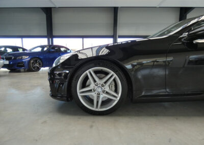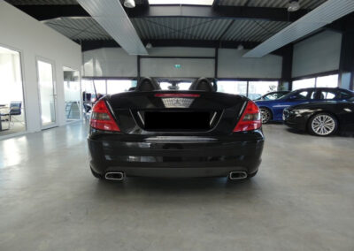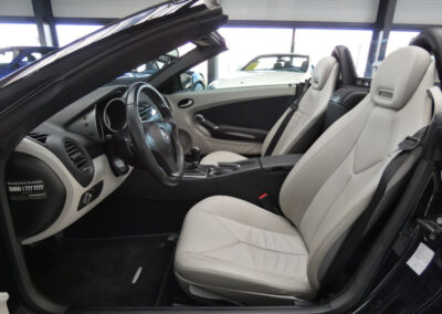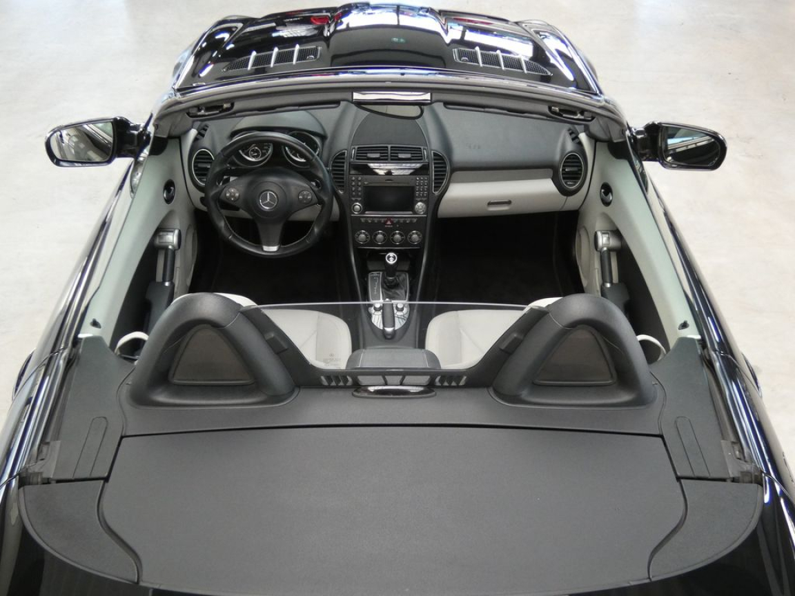 ABS (anti-blocage de roues) et BAS (freinage d’urgence assisté),Accoudoir AV avec casier de rangement et espace de rangement à l’AR entre les sièges,Airbags frontaux à plusieurs seuils de déclenchement,Airbags tête et thorax intégrés dans le dossier des sièges,Allumage automatique des feux,Arceaux de sécurité fixe,Batterie grande capacité,Boîte de vitesses automatique à 7 rapports 7G-TRONIC,Ceintures de sécurité à rétracteur et limiteurs d’effort,Clé design chromée,Climatisation automatique Thermatic,Colonne de direction réglable manuellement en hauteur et en profondeur,Combiné d’instrument avec compte-tours,Combiné d’instruments avec cadrans tubulaires en 3D,Détecteur de pluie,Direction assistée avec colonne de sécurité,Double sortie d’échappement en acier inoxydable,ESP (régulation de comportement dynamique) et ASR (antipatinage),Feux AR foncés,Filet pare-vent en tissu,Filtre à air sport,Garnitures intérieures en tissu noir,Guide-ceinture intégré au siège,Indicateur de pression des pneus au tableau de bord,Inserts décoratifs argentés,Jantes alliage 17,Jupe AV/AR et habillages bas de caisse AMG spécifiques,Levier de vitesse en cuir,Ordinateur de bord,Ouverture à distance du couvercle du coffre,Pack Eclairage Intérieur,Pédalier sport picots en caoutchouc,Phares-spots en verre transparent,Porte-gobelet,Projecteurs antibrouillard avec cerclage chromé,Radio Audio 20 RDS avec lecteur CD compatible MP3,Rétroviseurs extérieurs électriques avec rappel de clignotants LED en forme de flèche,Roue de secours compacte avec pompe à air électrique,Sièges réglables manuellement en approche et en hauteur,Sièges Sport avec cadre en magnésium,Système de freinage renforcé avec freins de plus grandes dimensions et disques perforés à l’AV,Tempomat (régulateur de vitesse) et Speedtronic (limiteur de vitesse),Toit escamotable électrohydraulique avec lunette AR chauffante et pivotante,Vitrage teinté vert,Volant multifonctions,Volant Sport 3 branches gainé de cuir