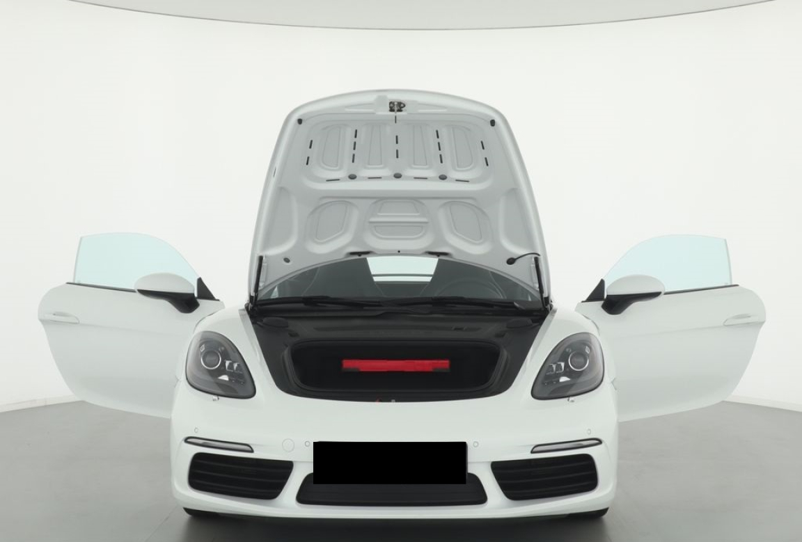2 porte-gobelets côté passager derrière la baguette décorative du tableau de bord,Affichage numérique: vitesse, rapport engagé, kilométrage total, journalier et heure,Aileron AR à déploiement automatique,Airbags grand volume conducteur et passager,Alarme volumétrique,Assistant d?éclairage automatique avec éclairage d?accompagnement,Baguettes de seuil de porte avec inscription du modèle,Blocs optiques supplémentaires à DEL dans le bouclier AV avec les feux de positions,Boîte de vitesse Porsche Doppelkupplung (PDK),Ciel de toit en tissu,Ciel de toit en tissu Noir,Climatisation avec filtre à charbon actif intégré,Coffres AV et AR,Combiné d’instruments avec compte-tours central et écran couleur haute définition de 4.6,Concept de véhicule 2 places avec moteur central,Console centrale montante avec vide-poches ouvert et coffre de rangement fermé,Contour des vitres latérales en aluminium (finition brillante),Couronne du volant,Crochets porte-vêtement au dos des sièges,Dégivrage de lunette AR,Direction directe électromécanique à rapport variable et impulsion,Ecrous antivol,Equipements de série 718 Boxster et 718 Cayman Teinte disponible : Noir,Essieu à jambes de force allégées à l’AV et à l’AR,Essuie-glaces de pare-brise avec balais d’essuie-glaces Aéro et buses de lave-glaces,Feux AR à DEL avec feux stop intégrés 4 points et feux de recul,Fonction ,Fonds des compteurs du combiné d’instruments (compte-tours compris) en Noir,Frein de parking électrique,Freins à étriers fixes monobloc en aluminium à 4 pistons à l?AV et à l’AR,Hayon AR à large ouverture avec lunette AR chauffante,Housses des sièges en Alcantara similicuir,Jantes Cayman 18,Kit anti-crevaison avec compresseur électrique,Lève-vitres électriques à impulsion et abaissement automatique de la vitre,Ligne d’échappement à double flux avec sortie centrale en Acier spécial,Phares Bi-Xénon avec feux de jour à DEL intégrés,Porsche Communication Management (PCM) avec pré-équipement pour téléphone portable et interface audi,Porsche Side Impact Protection System (POSIP) comprenant : protection anti-encastrement latérale dans les portes,Porsche Stability Management (PSM), ABS inclus avec fonctions de freinage avancées,Prise 12 Volts dans le plancher côté passager,Propulsion,Rétroviseurs extérieurs sur panneaux de portes,Sièges sport (2 réglages),Sièges Sport avec réglage électrique du dossier et réglage manuel de la profondeur et de la hauteur,Signature Porsche sur baguette décorative et désignation du modèle sur le bouclier AR,Sound Package Plus,Spots de lecture,Structure légère intélligente combinant l’aluminium et l’acier,Système anti-démarrage avec verrouillage centralisé et télécommande,Système d’alarme avec alarme volumétrique,Système de contrôle de la pression des pneus (TPM),Teintes extérieures de série unies : Blanc, Jaune Porsche Racing, Rouge Indien, Noir,Teintes intérieures de série: Noir, Gris Quartz, Beige Louxor,Touche Sport pour activation des réglages dynamiques du moteur et de la transmission,Ventilation avec fonction recyclage et dégivrage,Vide-poches dans les portières,Vitrage athermique teinté vert,Volant Sport diamètre de 375 mm, réglable manuellement en profondeur et en hauteur