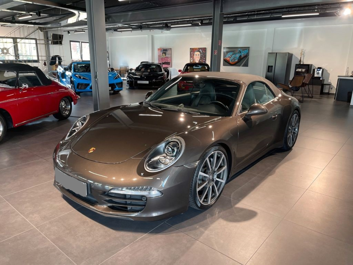 3 Prises 12V (plancher côté conducteur,5 instruments ronds intégrés au tableau de bord,Accélérateur électronique,Affichage analogique: régime moteur,Affichage du passage optimal des rapports dans le compte-tours,Aileron AR télescopique automatique,Airbags grand volume conducteur et passager,Arceau de sécurité à déploiement automatique,Assistance à l’utilisation des feux de croisement avec éclairage d’accompagnement,Assistance parking AR,Assistant d’éclairage automatique avec fonction ,Baguettes de seuil de porte avec monogramme,Bandes centrales et latérales des sièges AV et appui-tête en cuir estampé,Blocs optiques séparé intégrés dans le bouclier AV avec feux de jour et de position et clignotants à diodes DEL,Boîte à gants grand volume verrouillable,Boîte de vitesse Porsche Doppelkupplung (PDK) à 7 rapports avec commandes au volant,Cabriolet 2+2 places,Cadran du compte-tours de couleur Noire,Capot de coffre, capot moteur et portes en aluminium (toit également sur les modèles Coupé),Capote électrique avec lunette AR en verre chauffante,Ceintures de sécurité 3 points automatiques AV/AR, boucle de ceinture sur les sièges,Ciel de toit garni de tissu noir,Climatisation automatique bi-zone avec réglage individuel de la température pour le conducteur et le passager AV,Combiné d’instruments avec compte-tours central et affichage multifonction sur écran couleur TFT 4.6,Concept d’éclairage homogène blanc avec rhéostat progressif,Conception allégée intelligente alliant acier et aluminium,Console centrale montante avec barrettes de commande,Contrôle de l’usure des plaquettes de frein,Couronne du volant,Crochets porte-vêtement au dos des sièges AV,Désignation du modèle au niveau du seuil de porte,Désignation du modèle finition chromé brillant sur la partie AR,Direction assistée électromécanique à démultiplication variable et impulsion,Dispositif antidémarrage avec verrouillage centralisé et télécommande,Dispositif de contrôle de l’usure des freins sur chaque plaquette,Disques de frein de diamètre 330 mm à l’AV et à l’AR,Eclairage du plancher,Equipements de série, en teinte de série,Essieu AR multibras avec barres stabilisatrices,Essieu avec jambe de force McPherson et barres stabilisatrices AV,Essuie-glace AV à deux vitesses de balayage,Essuie-glace de pare-brise avec balais d’essuie-glaces Aéro,Etriers de frein Noirs,Etriers fixes monobloc en aluminium à 4 pistons à l’AV et l’AR,Feux AR comprenant les feux de recul,Feux AR en technologie DEL (feux de recul,Filtre à charbons actifs,Filtres à particules et à pollen avec filtre à charbon actif,Fonction ,Fond de compteur en Noir,Fond du compte-tours en Noir,Frein de parking électrique,Gestion des phases d’arrêt avec fonction antirecul,Interface Audio universelle (AUX) logée dans la boîte à gant,Intérieur de la capote garnie de tissu Noir,Jantes Carrera 11Jx19 en alliage léger, pneumatiques 285/35 ZR 19 à l,Jantes Carrera 11Jx19 en alliage léger, pneumatiques 295/35 ZR 19 à l,Jantes Carrera 19,Kit de réparation pneumatique avec compresseur électrique,Lève-vitres électriques AV à impulsion et abaissement séquentiel,Logements pour système de fixation de siège enfant ISOFIX et Top-Tether sur les sièges AR,Lunette AR dégivrante,Pack Audio Plus,Phares Bi-Xénon avec réglage dynamique du site des phares et lave-phares,Porsche Side Impact Protection System (POSIP),Porsche Stability Management (PSM) avec ABS,Porte-gobelets logés au-dessus de la boîte à gants (derrière baguette décorative du tableau de bord),Pré-équipement Porche Vehicle Tracking System (PVTS),Prétensionneurs de ceintures et limiteurs d’effort à l’AV,Propulsion,Protection anti-tonneau à déploiement automatique,Récupération de l’énergie électrique pour l’électronique embarquée,Rétroviseurs extérieurs à réglage électrique, chauffants et asphérique côté conducteur,Saute-vent électrique intégré,Sièges AR rabattables séparément,Sièges Sport avec réglage électrique de l’inclinaison du dossier et de la hauteur du siège ainsi que réglage manuel de l’avancée du siège,Signature Porsche et monogramme sur le hayon AR, chromés,Sound Package Plus: Système audio analogique 9HP d’une puissance de 235W,Spots de lecture,Système audio CDR,Système audio CDR-31 avec Pack Audio Plus et interface AUX,Système d’admission à résonance,Système d’antiblocage des roues (ABS intégré au PSM),Système d’échappement double flux doté de 2 sorties d’échappement simples en acier spécial brossé,Système de contrôle de la pression des pneus (TPM),Système de diagnostic embarqué pour contrôle des émissions à l’échappement,Système de fixation ISOFIX pour sièges enfants à lAR,Système de stabilisation dynamique PSM (Porsche Stability Management) avec fonctions antiblocage (ABS),Teintes de capote : Noir, Bleu, Brun, Rouge,Teintes extérieures unies: Blanc, Jaune Racing, Rouge Indien, Noir,Teintes intérieures de série: Noir, Gris Platine, Beige Louxor, Bleu Yachting,Tôle d’acier galvanisée à chaud sur les deux faces,Touche SPORT,Verrouillage centralisé avec télécommande,Vide-poches dans les portières,Vitrage athermique teinté vert,Vitres AR électriques,Vitres latérales AV avec revêtement hydrophobe,Vitres teintées thermo-isolées,Volant Sport à réglage manuel en hauteur et en profondeur