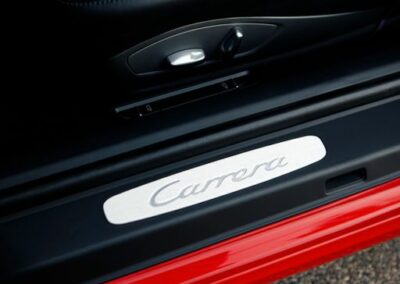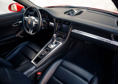 3 Prises 12V (plancher côté conducteur,5 instruments ronds intégrés au tableau de bord,Accélérateur électronique,Affichage analogique: régime moteur,Affichage du passage optimal des rapports dans le compte-tours,Aileron AR télescopique automatique,Airbags grand volume conducteur et passager,Assistance à l’utilisation des feux de croisement avec éclairage d’accompagnement,Assistant d’éclairage automatique avec fonction ,Baguettes de seuil de porte avec monogramme,Bandes centrales et latérales des sièges AV et appui-tête en cuir estampé,Blocs optiques séparé intégrés dans le bouclier AV avec feux de jour et de position et clignotants à diodes DEL,Boîte à gants grand volume verrouillable,Boîte de vitesse Porsche Doppelkupplung (PDK) à 7 rapports avec commandes au volant,Cadran du compte-tours de couleur Noire,Capot de coffre, capot moteur et portes en aluminium (toit également sur les modèles Coupé),Ceintures de sécurité 3 points automatiques AV/AR, boucle de ceinture sur les sièges,Ciel de toit et habillage du montant de lunette AR en alcantara,Ciel de toit et montants de lunette AR en alcantara,Climatisation automatique bi-zone avec réglage individuel de la température pour le conducteur et le passager AV,Combiné d’instruments avec compte-tours central et affichage multifonction sur écran couleur TFT 4.6,Concept d’éclairage homogène blanc avec rhéostat progressif,Conception allégée intelligente alliant acier et aluminium,Console centrale montante avec barrettes de commande,Contrôle de l’usure des plaquettes de frein,Coupé 2+2 places,Couronne du volant,Crochets porte-vêtement au dos des sièges AV,Crochets porte-vêtement sur les montants latéraux,Désignation du modèle au niveau du seuil de porte,Désignation du modèle finition chromé brillant sur la partie AR,Direction assistée électromécanique à démultiplication variable et impulsion,Dispositif antidémarrage avec verrouillage centralisé et télécommande,Dispositif de contrôle de l’usure des freins sur chaque plaquette,Disques de frein de diamètre 330 mm à l’AV et à l’AR,Eclairage du plancher,Equipements de série, en teinte de série,Espace de rangement supplémentaire derrière les sièges AR,Essieu AR multibras avec barres stabilisatrices,Essieu avec jambe de force McPherson et barres stabilisatrices AV,Essuie-glace AV à deux vitesses de balayage,Essuie-glace de pare-brise avec balais d’essuie-glaces Aéro,Etriers de frein Noirs,Etriers fixes monobloc en aluminium à 4 pistons à l’AV et l’AR,Feux AR comprenant les feux de recul,Feux AR en technologie DEL (feux de recul,Filtre à charbons actifs,Filtres à particules et à pollen avec filtre à charbon actif,Fonction ,Fond de compteur en Noir,Fond du compte-tours en Noir,Frein de parking électrique,Gestion des phases d’arrêt avec fonction antirecul,Interface Audio universelle (AUX) logée dans la boîte à gant,Jantes Carrera 11Jx19 en alliage léger, pneumatiques 285/35 ZR 19 à l,Jantes Carrera 11Jx19 en alliage léger, pneumatiques 295/35 ZR 19 à l,Jantes Carrera 19,Kit de réparation pneumatique avec compresseur électrique,Lève-vitres électriques AV à impulsion et abaissement séquentiel,Logements pour système de fixation de siège enfant ISOFIX et Top-Tether sur les sièges AR,Lunette AR dégivrante,Pack Audio Plus,Phares Bi-Xénon avec réglage dynamique du site des phares et lave-phares,Porsche Side Impact Protection System (POSIP),Porsche Stability Management (PSM) avec ABS,Porte-gobelets logés au-dessus de la boîte à gants (derrière baguette décorative du tableau de bord),Pré-équipement Porche Vehicle Tracking System (PVTS),Pré-équipement pour le montage d’un système de transport sur toit,Prétensionneurs de ceintures et limiteurs d’effort à l’AV,Propulsion,Récupération de l’énergie électrique pour l’électronique embarquée,Rétroviseurs extérieurs à réglage électrique, chauffants et asphérique côté conducteur,Sièges AR rabattables séparément,Sièges Sport avec réglage électrique de l’inclinaison du dossier et de la hauteur du siège ainsi que réglage manuel de l’avancée du siège,Signature Porsche et monogramme sur le hayon AR, chromés,Sound Package Plus: Système audio analogique 9HP d’une puissance de 235W,Spots de lecture,Système audio CDR,Système audio CDR-31 avec Pack Audio Plus et interface AUX,Système d’admission à résonance,Système d’antiblocage des roues (ABS intégré au PSM),Système d’échappement double flux doté de 2 sorties d’échappement simples en acier spécial brossé,Système de contrôle de la pression des pneus (TPM),Système de diagnostic embarqué pour contrôle des émissions à l’échappement,Système de fixation ISOFIX pour sièges enfants à l?AR,Système de stabilisation dynamique PSM (Porsche Stability Management) avec fonctions antiblocage (ABS),Teintes extérieures unies: Blanc, Jaune Racing, Rouge Indien, Noir,Teintes intérieures de série: Noir, Gris Platine, Beige Louxor, Bleu Yachting,Tôle d’acier galvanisée à chaud sur les deux faces,Touche SPORT,Verrouillage centralisé avec télécommande,Vide-poches dans les portières,Vitrage athermique teinté vert,Vitres latérales AV avec revêtement hydrophobe,Vitres teintées thermo-isolées,Volant Sport à réglage manuel en hauteur et en profondeur