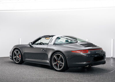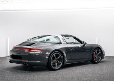 2 porte-gobelets côté passager derrière la baguette décorative du tableau de bord,3 Prises 12V (plancher côté passager,5 instruments ronds intégrés au tableau de bord,ABS,Affichage analogique: régime moteur,Affichage du rapport dans le compte-tours,Aileron AR à déploiement automatique,Airbags grand volume (2 niveaux de déclenchement) pour le conducteur et le passager AV,Arceaux Targa fixe avec baguette en aluminium, grilles et monogramme Targa,Assistance automatique à l’utilisation des feux de croisement comprenant l’éclairage d’accompagnemen t,Assistance parking AR,Assistant d’éclairage automatique avec fonction ,Bac à capote avec tapis Noir,Bandeau de feux AR avec feu de stationnement et feu AR intégré,Bandes centrales et latérales des sièges AV et appui-tête en cuir estampé,Bas de caisse latéraux noirs,Blocs optiques additionnels séparé intégrés dans le bouclier AV avec feux de position et feux de jou r,Blocs optiques séparé intégrés dans le bouclier AV avec feux de jour et de position et clignotants à diodes DEL,Boîte de vitesse Porsche Doppelkupplung (PDK),Cadrans du combiné d’instruments de couleur Noir et compte-tours de couleur Argent,Capot de coffre à bagages, ailes AV, portes et capot AR en aluminium,Capote en tissu entièrement électrique et automatique comprenant une coque rigide et un cintre tendeur de pavillon en magnésium ainsi qu’une lunette AR convexe chauffante en verre de sécurité feuilleté commande du toit à l’arrêt,Carrosserie Targa 2+2 places élargie et transmission intégrale,Ceintures de sécurité 3 points AV/AR, boucles de ceinture sur les sièges,Ceintures de sécurité automatiques à 3 points à l?AV et à l?AR,Ciel de toit en tissu Noir,Climatisation automatique bi-zone avec réglage individuel de la température pour le conducteur et le passager AV,Combiné d’instruments avec compte-tours central et écran couleur haute définition de 4.6,Conception allégée intelligente alliant acier et aluminium,Console centrale ascendante avec espace de rangement ouvert et casier de rangement fermé avec prise 12V,Console centrale montante avec barrettes de commandes,Contrôle de l’usure des plaquettes de frein,Couronne de volant,Crochets porte-vêtement au dos des sièges AV,Déflecteur à déploiement manuel intégré à la traverse du pavillon,Direction assistée électromécanique à démultiplication variable et impulsion,Direction assistée électromécanique à rapport variable,Dispositif antidémarrage avec verrouillage centralisé et télécommande,Disques de frein de diamètre 330 mm à l’AV et à l’AR,Disques de frein de diamètre 340 mm à l’AV et de 330 mm à l’AR,Enjoliveurs de bas de caisse latéraux en Noir,Enjoliveurs de roues avec écusson Porsche monochrome,Essieu AR multibras avec barres stabilisatrices,Essieu AV à jambe de force McPherson avec barre stabilisatrice,Essuie-glaces AV avec balais aérodynamiques,Etriers de frein Rouges,Etriers fixes monobloc en aluminium à 6 pistons à l’AV et 4 pistons à l’AR,Feux AR à diodes électroluminescentes (DEL) comprenant les feux de recul et de position,Filtres à particules et à pollen avec filtre à charbon actif,Fonction ,Frein de parking électrique,Gestion des phases d’arrêt avec fonction antirecul,Habillage de l’arceau Targa en Alcantara Noir,Interface Audio universelle (AUX) logée dans la boîte à gant,Jantes Carrera S 20,Kit anti-crevaison avec compresseur électrique,Lève-vitres électriques avec fonction à impulsion haut/bas et abaissement automatique de la vitre,Logements pour système de fixation de siège enfant ISOFIX sur les sièges AR,Lunette AR dégivrante,Monogramme finition chromé brillant sur la partie AR,Monogramme sur les baguettes de seuils de porte,Phares Bi-Xénon avec réglage dynamique du site des phares et lave-phares,Porsche Active Suspention Management (PASM),Porsche Side Impact Protection System (POSIP) comprenant : protection anti-encastrement latérale dans les portes,Porsche Torque Vectoring Plus (PTV Plus),Prétensionneurs de ceintures et limiteurs d’effort à l’AV,Prises d’air latérales AV avec lamelles spécifiques,Protection anti-tonneau intégrée à l’arceau Targa fixe,Rétroviseurs extérieurs à réglage électrique chauffants montés sur les portes et asphérique côté conducteur,Sièges AR rabattables séparément,Sièges Sport avec réglage électrique des dossiers et de la hauteur ainsi que réglage longitudinal mécanique,Sound Package Plus: Système audio analogique 9HP d’une puissance de 235W,Spots de lecture,Système audio CDR avec écran tactile couleur 7,Système de contrôle de la pression des pneus (TPM),Système de récupération de l’énergie,Système de stabilité dynamique PSM (Porsche Stability Management) avec ABS, ASR, ABD, MSR,Tableau de bord avec compte-tours central,Teintes de série – Intérieur : Noir, Gris Platine, Beige Louxor, Bleu Yachting,Teintes extérieures unies: Blanc, Jaune Racing, Rouge Indien, Noir,Tôle d’acier galvanisée à chaud sur les deux faces,Touche SPORT,Transmission intégrale active avec embrayage multidisques Porsche Traction Management (PTM),Verrouillage centralisé avec télécommande,Vide-poche dans les portières,Vitrage athermique teinté vert,Vitres de portes avec revêtement hydrophobe,Volant Sport à réglage manuel en hauteur et en profondeur