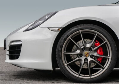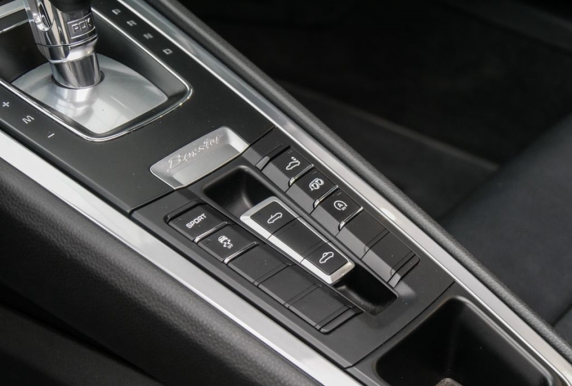 3 instruments ronds intégrés dans le cockpit,3 Prises 12V (plancher côté passager,ABS 9.0 intégré au PSM,ABS 9.0 intégré dans le PSM,Accoudoirs et couvercle du coffre de rangement de la console centrale en cuir de couleur intérieure,Affichage analogique: régime, vitesse et jauge de carburant,Affichage de la vitesse engagée sur le compte-tours,Affichage numérique permanent : kilométrage parcouru,Aileron AR à déploiement automatique,Airbags grand volume (2 niveaux de déclenchement) pour le conducteur et le passager AV,Alarme volumétrique,Appuis-tête intégrés aux sièges,Assistance à l’utilisation des feux de croisement avec éclairage d’accompagnement,Baguettes de seuil de porte avec monogramme,Blocs optiques additionnels séparés à diodes électroluminescentes,Blocs optiques séparés à DEL dans le bouclier AV avec les feux de jour et les feux de position,Boîte à gants verrouillable,Boîte de vitesse Porsche Doppelkupplung (PDK) à 7 rapports avec commandes au volant,Capote : Noir, Bleu, Brun, Rouge,Capote électrique ( ouverture et fermeture jusqu’à 50 km/h) avec lunette AR chauffante en verre,Ceintures de sécurité à 3 points, points d’ancrage de ceintures sur les sièges,Ciel de capote tendu de tissu Noir,Climatisation avec filtre à charbon actif intégré,Conception allégée intelligente alliant acier et aluminium,Console centrale montante avec barrettes de commande,Couronne du volant, levier de vitesse et poignées de porte en cuir de couleur intérieure,Crochets porte-vêtement au dos des sièges AV,Déverrouillage électrique des coffres AV et AR,Direction assistée électromécanique à démultiplication variable et impulsion,Dispositif anti-démarrage (système par transpondeur) avec verrouillage centralisé et télécommande,Dispositif de contrôle de l’usure des freins sur chaque plaquette,Disques plus épais à l’AR,Eléments en Argent galvanisé : buses d?aération,Equipements de série Boxster S (teinte de série) Éléments identiques au Boxster,Essieux de conception allegée avec jambes de force McPherson et barres stabilisatrices AV/AR,Essuie-glaces AV aérodynamiques à deux vitesses de balayage,Etriers de frein Rouges,Etriers fixes monobloc en aluminium à 4 pistons à l’AV et l’AR,Feux AR comprenant les feux de recul,Filets de rangement au niveau du plancher côté passager,Fonction ,Fonction antirecul,Fonds de compteur en Noir, compte-tours à fond Argent,Frein de parking électrique,Interface Audio universelle (AUX) logée dans la boîte à gant,Jantes Boxster S 19,Kit de réparation pneumatique avec compresseur électrique,Lamelle des grilles des entrées d’air du bouclier AV en Noir,Lève-vitres électriques à impulsion et abaissement séquentiel,Miroirs de courtoisie dans les pare-soleil (conducteur et passager),Ordinateur de bord,Peinture de série: Blanc, Jaune Porsche Racing, Rouge Indien et Noir,Phares Bi-Xénon avec clignotants intégrés,Plaquette portant l’inscription Boxster devant le levier de vitesse,Porsche Side Impact Protection System (POSIP) comprenant : protection anti-encastrement latérale dans les portes,Porte-gobelets intégrés derrière baguette décorative du tableau de bord,Portes et capots de coffre AV et AR en aluminium,Pré-équipement Porche Vehicle Tracking System (PVTS),Prétensionneurs et limiteurs d’effort de ceinture,Protection en cas de tonneaux (montants de pare-brise rigides et arceaux de sécurité),Récupération d’énergie au freinage,Rétroviseurs extérieurs électriques chauffants sur les portes, asphérique côté conducteur,Saute-vent,Sellerie Alcantara / simili cuir,Sièges sport avec réglage électrique des dossiers et réglage manuel de la distance au volant et de la hauteur des assises,Signature Porsche et monogramme AR, chromé, finition brillante sur le capot de coffre,Soubassement caréné,Spots de lecture,Structure renforcée en Aluminium à l’AR,Système audio CDR avec écran couleur tactile 7,Système audio CDR avec écran tactile couleur 7,Système audio CDR avec interface AUX,Système d’alarme avec alarme volumétrique,Système d’échappement à double sortie d’échappement centrale en acier spécial brossé,Système de contrôle de la pression des pneus (TPM),Système de diagnostic embarqué pour contrôle des émissions à l’échappement,Système de stabilisation dynamique PSM (Porsche Stability Management) nouvelle génération avec fonctions antiblocage (ABS),Tableau de bord avec compte-tours central,Teintes de série – Intérieur : Noir, Gris Platine, Beige Louxor, Bleu Yachting,Teintes unies – Extérieur : Blanc Carrara, Jaune Porsche Racing, Rouge Indien et Noir,Tirants de porte à 3 dispositions d’arrêt,Tôle d’acier galvanisée à chaud sur les deux faces,Touche SPORT,Ventilation avec fonction recyclage et dégivrage,Verrouillage centralisé avec télécommande,Vide-poches dans les contre-portes,Vitres latérales avec revêtement hydrophobe,Vitres teintées thermo-isolées,Volant Sport à réglage manuel en hauteur et en profondeur