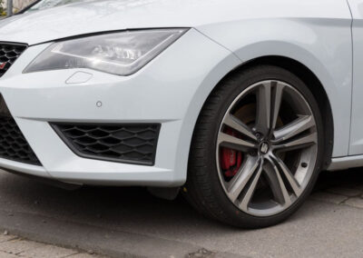 Applications intérieures Noir laqué,Blocage de différentiel mécanique à régulation électronique (VAQ),Calandre noire,Châssis sport CUPRA (-10 mm vs Leon FR),Châssis sport CUPRA (-25mm vs Leon FR),Climatisation automatique Climatronic,Climatisation automatique Climatronic bi-zone,Commande vocale,Connexion Bluetooth,Contrôle vocal,Détecteur de pluie et luminosité,Direction progressive,Double sortie d’échappement chromée,Eclairage intérieur à LED,Ecran couleur 5,8,Etriers de freins rouges avec logo CUPRA,Garantie 2 ans kilométrage illimité,Jantes alliage 19,Mode CUPRA avec désactivation de l’ESC,Palettes au volant avec version DSG,Pare-chocs extérieurs CUPRA,Peinture Rouge Emocion,Phares AV Full LED (éclairage diurne, feux de croisement, feux de route),Prise USB et carte SD,Projecteurs Full LED et feux AR à LED,Radars de stationnement AV/AR,Rétroviseurs extérieurs couleur noire,Rétroviseurs extérieurs noirs,Rétroviseurs extérieurs rabattables électriquement,SEAT Drive Profile CUPRA, 4 modes de conduite,SEAT Sound system (9 haut-parleurs et caisson de basses à faible encombrement),Sellerie Alcantara, sièges Sport,Seuils de portes CUPRA en aluminium,Sièges Sport Alcantara,Sièges Top-Sport Alcantara,Suspension pilotée DCC (normal/confort/sport),Système de navigation Europe,Système de navigation tactile, cartographie Europe, écran couleur 5,8 »,Tiroirs de rangement sous les sièges AV,Vitres AR surteintées,Vitres électriques,Volant à méplat CUPRA