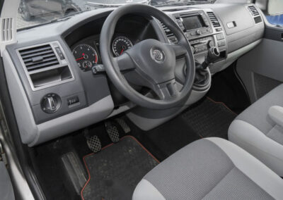 2 Clés pliantes de radiocommande pour le système de fermeture avec télécommande,2HP,3ème feu stop,4 jantes en acier 6.5Jx16,Accoudoir pour siège gauche dans la cabine,Affichage multifonctions ,Afficheur du niveau d’eau de lave-glace,Airbag pour conducteur et passager,Airbags frontaux AV avec désactivation airbag passager AV,Amortisseurs téléscopiques de type Mc Pherson,Anti-démarrage électronique,Appui lombaire pour siège individuel gauche dans la 1ère rangée de siège (réglable manuellement),Appuis-tête (réglables en hauteur et en inclinaison),Appuis-tête articulés et réglables en hauteur,Appuis-tête réglables en hauteur,Avertisseur sonore 2 tons,Banquette 2 places et un siège individuel à droite dans la 2e rangée de sièges,Banquette 3 places rabattables et birabattables dans la 3e RS (non posable en 4e RS pour système de fixation siège modulaire),Banquette double passagers à droite, dans la 1re rangée de sièges,Barres anti-roulis,Boîte à gants avec couvercle,Boîtiers des rétroviseurs et poignées de porte dans la couleur carosserie,Carrosserie autoporteurse tout en acier,Ceintures de sécurité 3 points à toutes les places,Ceintures de sécurité automatiques 3 points,Charnières pour portes AR/hayon en version normale,Châssis 16,Châssis à longeron et traverse,Chauffage d’appoint,Climatisation ,Climatisation semi-automatique ,Colonne de direction rétractable en cas de choc,Combiné d’instruments (km/h) affichage de la vitesse,Compteur kilométrique avec totalisateur journalier,Configuration 9 places (3+3+3) avec 2 sièges conducteuret banquette 2 place AV,Configuration 9 places (3+3+3) avec banquette passager 2 places dans la cabine conducteur + siège conducteur avec accoudoirs,Contrôle électronique de stabilisation avec assistant de freinage AFU,Correcteur électronique de trajectoire ESP,Déverrouillage hayon/capot AR de l’intérieur (électrique),Diffuseurs d’air pour fenêtres latérales dans le pavillon,Direction assistée avec colonne de direction de sécurité, réglable en hauteur et en longueur,Eclairage des instruments, avec gradateur,Eclairage diurne,Eclairage du marche-pied avec inscription ,Eclairage du marchepied, cabine et porte coulissante,Eclairage jour (allumé en permanence pendant la marche),Enjoliveurs intégraux 16,Essuie-glace AV à 2 vitesses et intermitence et lave-glace,Fenêtre coulissante à l’AV et fenêtre fixe à l’AR dans le compartiment de charge/passager à gauche,Fenêtre coulissante à l’AV et fenêtre fixe à l’AR,Feux AR de brouillard,Feux AR de brouillard, circulation à droite,Filtre à pollen et à poussière,Fonctionnement intermittent de l’essuie-glace,Freins à disque ventilés à l’AR,Freins à disque ventilés à l’AV,Garniture de plancher en feutre velours dans la cabine,Garniture de plancher en moquette dans le compartiment passagers,Habillage complet des parois latérales, du ciel de pavillon et du hayon,Hayon avec baie de fenêtre,Jantes en acier 6.5Jx16,Klaxon 2 tons,Lève-glaces électrique,Levier de vitesses de type ,Lunette AR (verre normal, dégivrante) avec essuie-glace/lave-glace de lunette AR,Miroir de courtoisie éclairé dans les pare-soleil l AV,Normes antipollution Euro5 (pour TDI avec filtre à particules diesel),Oeillets d’arrimage pour fixation de la charge,Ordinateur de bord ,Outillage de bord et cric renforcé,Pare-brise en verre feuilleté en verre athermique,Pare-chocs, rétroviseurs extérieurs et poignées de portes dans la teinte de la carrosserie,Pares-soleil y compris miroir de courtoisie (éclairé) avec cache et poche,Phares principaux halogènes en verre clair (H7) en style à double réflecteur,Pneus 205/65 R16C 107/105T,Poignée (rabattables et à retour freiné) sur le cadre de toit,Poignées de maintien passager AV,Points de fixation pour sièges-enfants ISOFIX (Banquette 3 places = 2 ; Siège individuel = 1),Porte coulissante à droite dans le compartiment de charge/passagers,Porte latérale coulissante droite avec sécurité enfants,Préparation radio,Préparation radio 2HP,Prise 12V,Protection bas de caisse,Protection centrale de roue,Protection de seuil de chargement en plastique,PTAC 3T,Réglage du site des phares,Réglage en hauteur pour siège individuel gauche dans la cabine,Régulateur de vitesse,Répétiteurs latéraux de clignotants,Réservoir en plastique 80 litres,Rétroviseur extérieur droit convexe,Rétroviseur extérieur gauche asphérique,Rétroviseur intérieur de sécurité à réglage jour/nuit,Rétroviseur intérieur jour/nuit,Rétroviseurs extérieurs électriques dégivrants,Rétroviseurs extérieurs réglables et dégivrants électriquement,Revêtement de sol AV et AR en moquette,Revêtement des sièges en tissu ,Revêtement intérieur de pavillon comme pavillon confort à 2 coques dans la cabine et compartiment passagers,Roue de secours (acier) avec pneu normal,Roue de secours en acier de taille normale avec cric et outillage,Sans ancrage de sièges supplémentaires,Sans barres de toit/galerie porte-bagages,Sécurité enfants pour portes et hayons dans le compartiment passagers,Sellerie en tissu ,Siège conducteur réglable en hauteur avec réglage lombaire et accoudoir,Signal sonore et lumineux pour ceinture de sécurité conducteur non attachée,Stores pare-soleil sur les fenêtres latérales dans le compartiment passager,Suspension AR indépendante,Suspension AV indépendante,Suspension et amortissement (standard),Système de freinage hydraulique avec freins à disque ventilés,Système de plafonnier dans le compartiment passagers,Système de redémarrage du moteur après arrêt avec récupération de l’énergie de freinage,Tableau de bord standard Plus,Toit normal avec fixations pour galeries porte-bagages : 8 pour empattement court,Trappe à carburant, verrouillée par fermeture porte conducteur,Trappe à essence verrouillable,Verre athermique (vert) dans la cabine et dans le compartiment de charge/passage