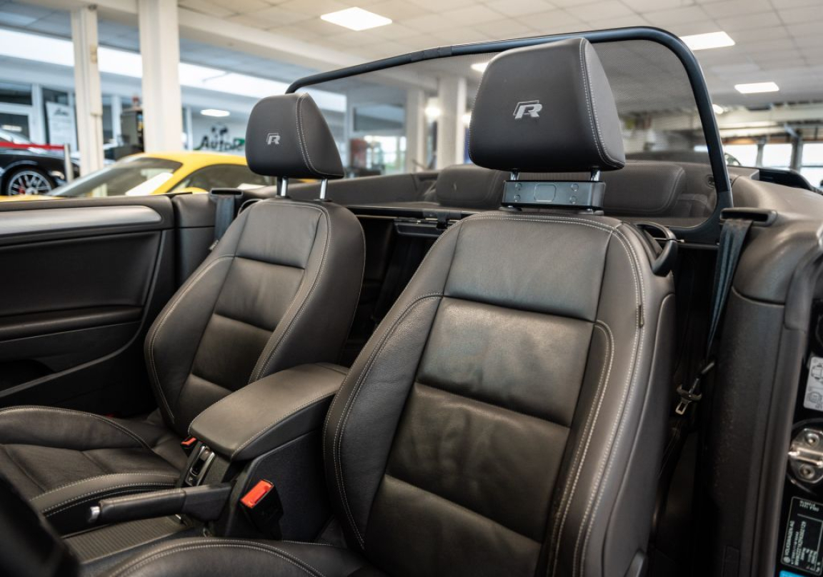 2 porte-boissons à l’AV,Accoudoir central à l’AV réglable,Accoudoir central AV réglable,Affichage de la périodicité d’entretien,Aide au stationnement AV/AR avec signaux sonores et visualisation de la distance des obstacles sur l’écran,Airbag de genoux conducteur,Airbags frontaux AV (Airbag passager désactivable par clé),Airbags latéraux AV,Alerte de perte de pression des pneus,Applications décoratives ,Appuis-tête AV à sécurité optimisée,Appuis-tête AV réglables en hauteur,Assistant de démarrage en côte,Avertisseur sonore de non bouclage des ceintures de sécurité AV,Avertisseur sonore de non-extinction des phares,Banquette AR rabattable symétriquement,Boîte à gants verrouillable, éclairée et réfrigérée,Boutons d’allumage des phares, de lève-vitres et de réglage de rétroviseurs avec filet chromé,Carrosserie entièrement galvanisée,Ceintures de sécurité AV 3 points à enrouleur réglables en hauteur avec prétensionneurs,Cerclage chromé des instruments de bord et des aérateurs,Châssis ‘Sport’ surbaissé de 25mm environ,Climatisation automatique ,Compartiment de rangement au centre des 2 sièges AV,Compartiment de rangement sur la planche de bord,Coques de rétroviseurs extérieurs Noires,Correcteur électronique de trajectoire ESP,Détecteur de pluie,Direction électromécanique à assistance variable en fonction de la vitesse,Dispositif de fixation Isofix pour 2 sièges enfant aux places extérieures AR,Easy Entry,Eclairage à LED de la plaque d’immatriculation AR,Eclairage des parties basses AV,Eclairage diurne à LED,Eclairage du coffre,Etriers de Freins noir siglé ,Fatigue Détection : système de détection de fatigue du conducteur,Feux AR teintés à LED,Filet anti-remous amovible avec housse de rangement,Filtre anti pollen à charbon actif,Grille de calandre noire siglée ,Interface Bluetooth pour téléphone portable,Jantes alliage léger ,Kit de dépannage en cas de crevaison (compresseur 12V et produit d’étanchéité de pneu),Klaxon 2 tons,Light Assist – Activation ou désactivation automatique des feux de route,Miroir de courtoisie sur les pare-soleil,Ordinateur de bord avec grand écran,Ordinateur de bord avec témoin de température extérieure,Pack Confort,Pack Connectivity,Pack Rétroviseurs,Pack Visibilité,Palettes de sélection DSG au volant,Pare-chocs AV et AR spécifiques ,Pare-chocs, rétroviseurs extérieurs et poignées de portes dans la teinte de la carrosserie,Pédalier en acier inoxydable,Plafonnier à extinction temporisée,Pommeau de levier de vitesse avec insert alu et surpiqures Art Grey,Porte-bouteille (1.5L) dans les portières AV,Prise 12V dans le coffre à bagages,Prise auxiliaire,Projecteurs antibrouillard AV avec contours chromés,Projecteurs antibrouillard AV avec éclairage statique d’intersection et contours chromés,Projecteurs bi-xénon directionnels spécifique ,Protection antidémarrage Immotronic,Régulateur de vitesse,Rétroviseurs extérieurs électriques, dégivrants et asphérique côté conducteur,Rétroviseurs extérieurs rabattables électriquement avec fonction mémoire (la glace du rétroviseur ex térieur passager se baisse lors du passage de la marche AR,Sellerie en cuir ,Seuils de portes en Aluminium avec logo R,Sièges AV sport réglables en hauteur avec réglage lombaire,Sortie d’echappement chromée à droite et à gauche,Système d’alarme antivol,Système d’arceaux de sécurité actifs incluant les appuis-tête AR Se déploient automatiquement de l’AR de la banquette en 0.25 seconde. Liés au cadre du pare-brise renforcé,Système de radionavigation RNS 315 avec écran tactile 5,Tapis de sol AV/AR,Tiroir de rangement sous siège conducteur,Tiroir de rangement sous siège passager AV,Toit souple à commande électro-hydraulique entièrement automatique,Verrouillage centralisé avec télécommande à fréquence radio par clé rétractable,Vide-poches dans les portières AR,Vitres athermiques teintées vertes,Vitres électriques AV et AR,Volant multifonction cuir,Volant Sport cuir multifonction avec palettes de changement de vitesses,XDS: Différentiel autobloquant électronique