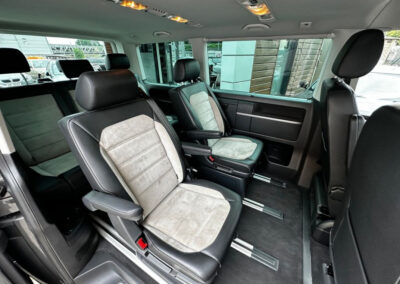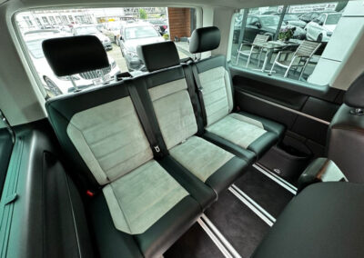 1 Câble USB (compatible Apple) et AUX-IN,2 clés pliantes de radiocommande pour le système de fermeture avec télécommande,2 Pare-soleil orientables avec miroir de courtoisie et éclairage,2 Siéges pivotants avec réglage longitudinal sur système de glissières,Affichage multifonction ,Afficheur du niveau d’eau de lave-glace,Aide à la fermeture pour le hayon,Airbags frontaux,Airbags latéraux et de tête conducteur et passager AV,Airbags pour conducteur/passager,Antidémarrage électronique,Assistant au changement de file ,Baguette décorative en partie basse du tableau de bord type ,Bandeau décoratif en partie supérieur du tableau de bord en style ,Banquette 3 places (coulissante) avec fonction couchette et vide-poches,Boîte à gants avec couvercle,Boîte à gants verrouillable et réfrigérée,Boitiers de rétroviseurs extérieurs et poignées de portes dans la couleur carrosserie,Buses de lave-glace AV dégivrantes et afficheur du niveau d’eau du lave-glace,Calandre noir avec 3 lamelles chromées,Ceintures de sécurité automatiques 3 points,Climatisation 3 zones ,Combiné d’instruments (km/h) affichage de la vitesse,Contrôle de pression des pneus,Contrôle électronique de stabilisation avec assistant de freinage AFU,Couvre-coffre,Déverrouillage hayon/capot AR de l’intérieur (électrique),Direction assistée électromécanique avec colonne de direction de sécurité réglable en hauteur et en profondeur,Eclairage jour (allumé en permanence pendant la marche),Feux antibrouillard AR,Feux AR à LED,Finition cuir partielle (pommeau de levier de vitesses en cuir),Fonctionnement intermittent des essuie-glace,Garniture de plancher en moquette dans la cabine,Garniture de plancher en moquette dans le compartiment passagers,Hayon vitré avec lunette AR dégivrante et essuie-glace/lave-glace,Jantes en alliage léger ,Jantes en alliage léger ,Kit de dépannage en cas de crevaison,Lave-phares avec buses de lave-glace AV dégivrantes et afficheur du niveau d’eau du lave-glace,Lève-vitres électrique,Pack BlueMotion Technology,Pack Chrome,Pack Lumière et Visibilité,Pack vitrage insonorisant,Pare-chocs (plastique) peints,Phare antibrouillard y compris feux de bifurcation,Phares Full LED AV/AR avec éclairage jour à LED,Pneus 255/45 R18 103H à faible résistance au roulement,Pneus 255/45 R18 103H XL à faible résistance au roulement,Poignées d’accès sur le montant avant, côté conducteur et passager avant,Points de fixation pour sièges-enfants ISOFIX (Banquette 3 places = 2 ; Siège individuel = 1),Porte coulissante à droite dans le compartiment de charge/passagers,Porte coulissante à gauche dans le compartiment de charge/passagers,Prise 12V,Protection de seuil de chargement en acier inoxydable,Radar de recul AV et AR + camera de recul ,Radio ,Réglage en hauteur pour sièges conducteur et passager,Régulateur automatique de distance ACC jusqu’à 160 km/ h et système de surveillance périmétrique ,Régulateur de vitesse,Régulation adaptative du châssis DCC avec châssis standard,Réservoir en plastique 80 litres,Rétroviseur extérieur droit convexe,Rétroviseur extérieur gauche asphérique,Rétroviseurs extérieurs dégivrants, réglables et rabattables électriquement,Revêtement de sol AV et AR en moquette,Sans barres de toit/galerie porte-bagages,Sécurité enfants pour portes et hayons dans le compartiment passagers,Sellerie en Alcantara/Cuir,Sièges AV chauffants réglables séparément,Sièges Chauffants pour conducteur et passager à réglages séparés,Sièges garnis partiellement d?Alcantra,Stores pare-soleil sur les fenêtres latérales dans le compartiment passager,Système ,Système de freinage hydraulique avec freins à disque ventilés,Système de surveillance périmétrique ,Table multifonctions (ronde) montée sur rails au sol,Tapis de sol en velours dans la cabine,Toit normal avec fixations pour galeries porte-bagages : 8 pour empattement court,Trappe à carburant, verrouillée par fermeture porte conducteur,Verre athermique dans la cabine (vert),vitrage teinté sombre (Privacy) dans compartiment passagers,Verrouillage central avec radiocommande et commande intérieure de déverrouillage SANS dispositif de sécurité Safe,Vitres coulissantes à gauche et à droite,Volant cuir multifonctions avec élément de commande pour radio et téléphone portable,Volant et pommeau de levier de vitesses en cuir,Volant multifonction cuir