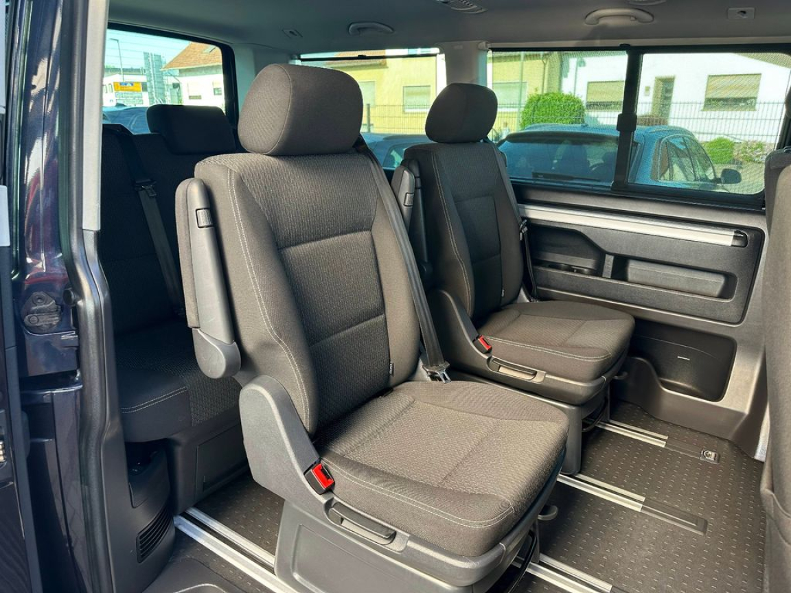 2 clés pliantes de radiocommande pour le système de fermeture avec télécommande,2 Pare-soleil orientables avec miroir de courtoisie,2 Siéges pivotants avec réglage longitudinal sur système de glissières,2 Sièges pivotants avec réglage longitudinal sur système de glissières dans la 2ème rangée de sièges,Affichage multifonctions ,Airbags frontaux,Airbags latéraux et de tête conducteur et passager AV,Airbags pour conducteur/passager,Antidémarrage électronique,Banquette 3 places (coulissante) avec fonction couchette et vide-poches,Boîte à gants avec couvercle,Boitiers de rétroviseurs extérieurs et poignées de porte en noir,Câble adaptateur USB,Calandre, non peinte, avec une baguette chromée,Ceintures de sécurité automatiques 3 points,Climatisation ,Combiné d’instruments (km/h) affichage de la vitesse,Contrôle de pression des pneus,Contrôle électronique de stabilisation avec assistant de freinage AFU,Déverrouillage hayon/capot AR de l’extérieur,Direction assistée électromécanique avec colonne de direction de sécurité réglable en hauteur et en profondeur,Eclairage jour (allumé en permanence pendant la marche),Feux antibrouillard AR,Finition cuir partielle (pommeau de levier de vitesses en cuir),Fonctionnement intermittent des essuie-glace,Garniture de plancher en moquette dans la cabine,Garniture de plancher en plastique dans le compartiment passagers,Hayon vitré avec lunette AR dégivrante et essuie-glace/lave-glace,Jantes en alliage léger ,Lève-vitres électrique,Lève-vitres électrique AV et AR,Outillage de bord et cric,Pack BlueMotion Technology,Pare-chocs (plastique) peints,Phares principaux halogènes H4, circulation à droite,Pneus 215/65 R16 C106/104T à faible résistance au roulement,Poignées d’accès sur le montant avant, côté conducteur et passager avant,Points de fixation pour sièges-enfants ISOFIX (Banquette 3 places = 2 ; Siège individuel = 1),Porte coulissante à droite dans le compartiment de charge/passagers,Prise 12V,Protection de seuil de chargement en plastique,Radio ,Réglage en hauteur pour sièges conducteur et passager,Régulateur de vitesse,Réservoir en plastique 70 litres,Rétroviseur extérieur droit convexe,Rétroviseur extérieur gauche asphérique,Rétroviseurs extérieurs réglables et dégivrants électriquement,Revêtement de sol AV en moquette et AR en caoutchouc lavable,Roue de secours avec pneu normal,Sans barres de toit/galerie porte-bagages,Sécurité enfants sur les portes coulissantes dans le compartiment passagers,Sellerie en tissu, dessin ,Siège conducteur et passager ,Sièges garnis partiellement d?Alcantra,Stores pare-soleil sur les fenêtres latérales dans le compartiment passager,Système ,Système de freinage hydraulique avec freins à disque ventilés,Table de camping (pour l’intérieur et à l’extérieur),Toit normal avec fixations pour galeries porte-bagages : 8 pour empattement court,Trappe à carburant, verrouillée par fermeture porte conducteur,Verre athermique (vert) dans la cabine et dans le compartiment de charge/passagers,Verrouillage central avec radiocommande et commande intérieure de déverrouillage SANS dispositif de sécurité Safe,Vitres athermiques teintées vertes,Vitres coulissantes à gauche et à droite,Volant cuir multifonctions avec élément de commande pour radio et téléphone portable,Volant et pommeau de levier de vitesses en cuir,Volant multifonction cuir